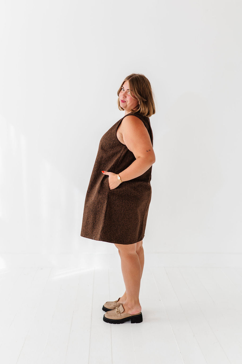 Nala Denim Dress in Brown