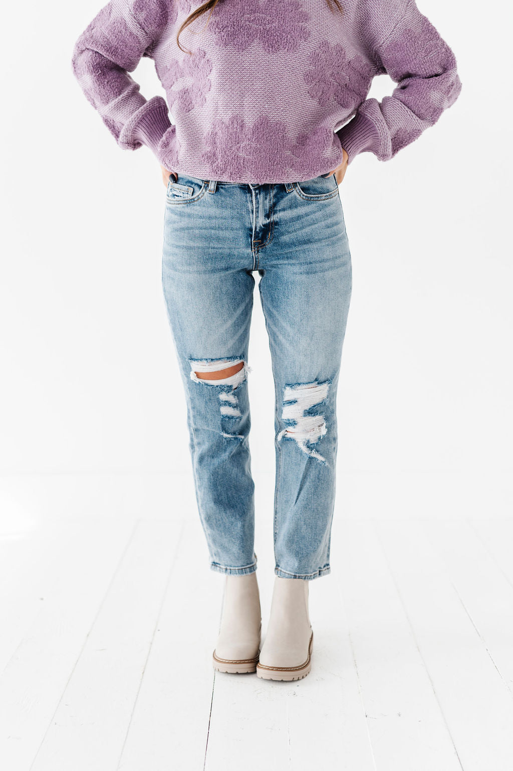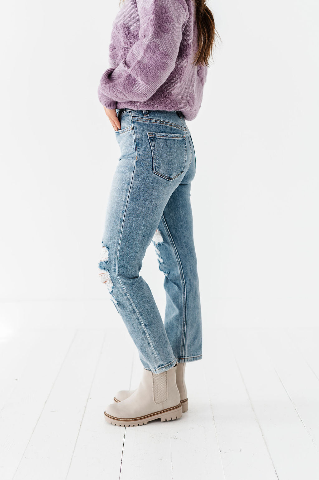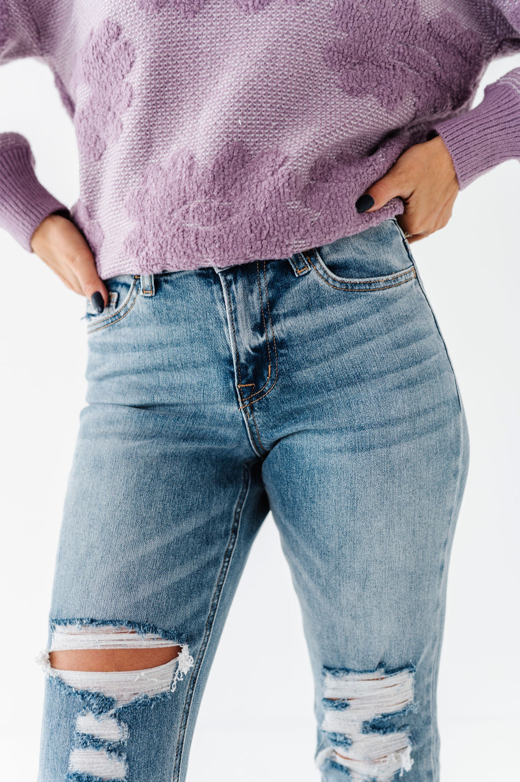 - Distressed knee and coin pocket