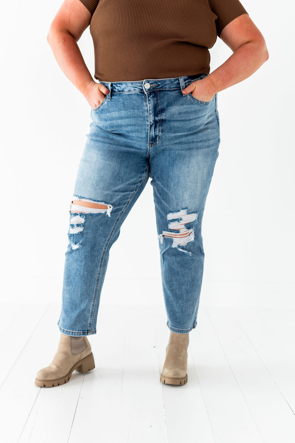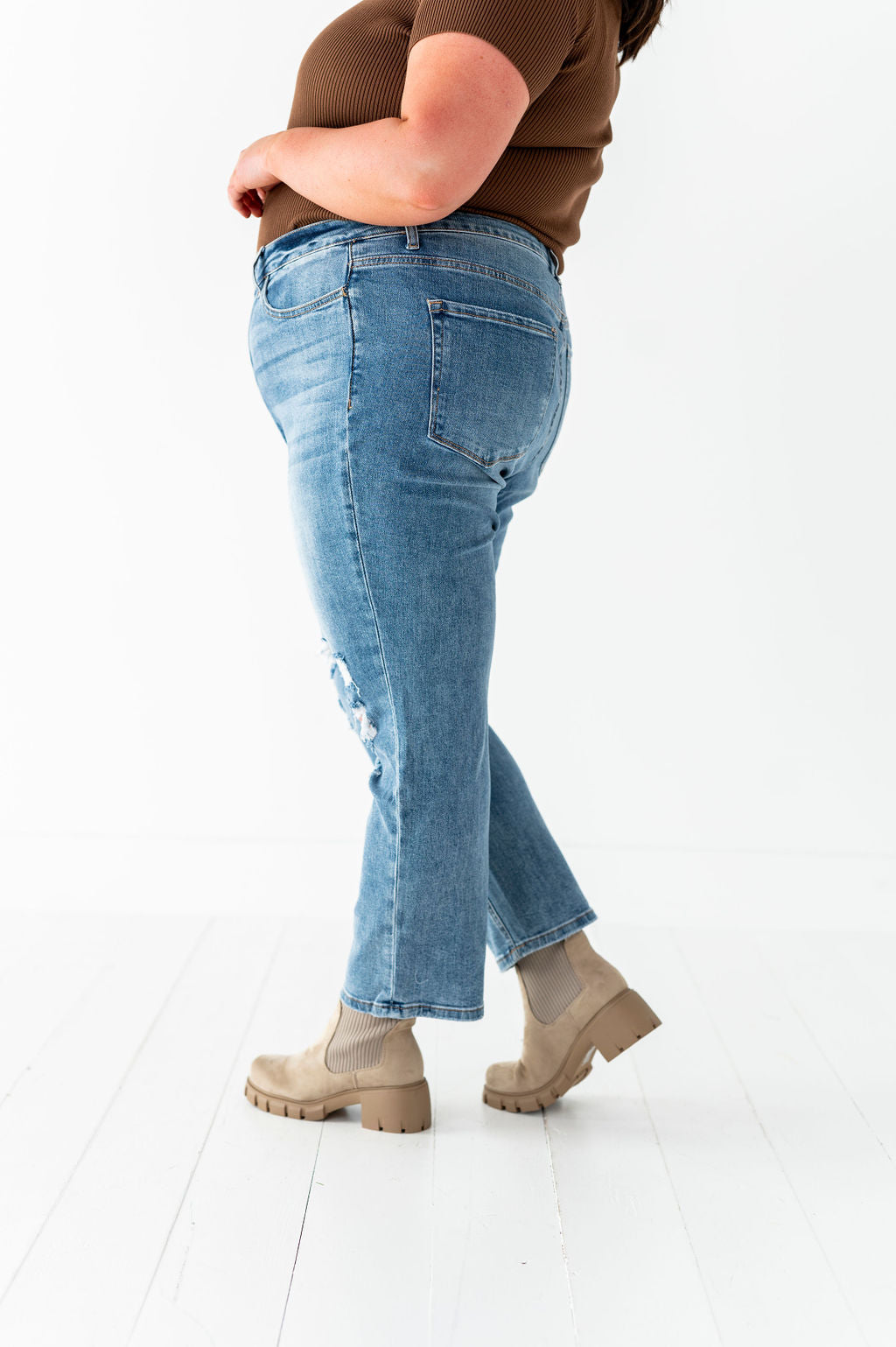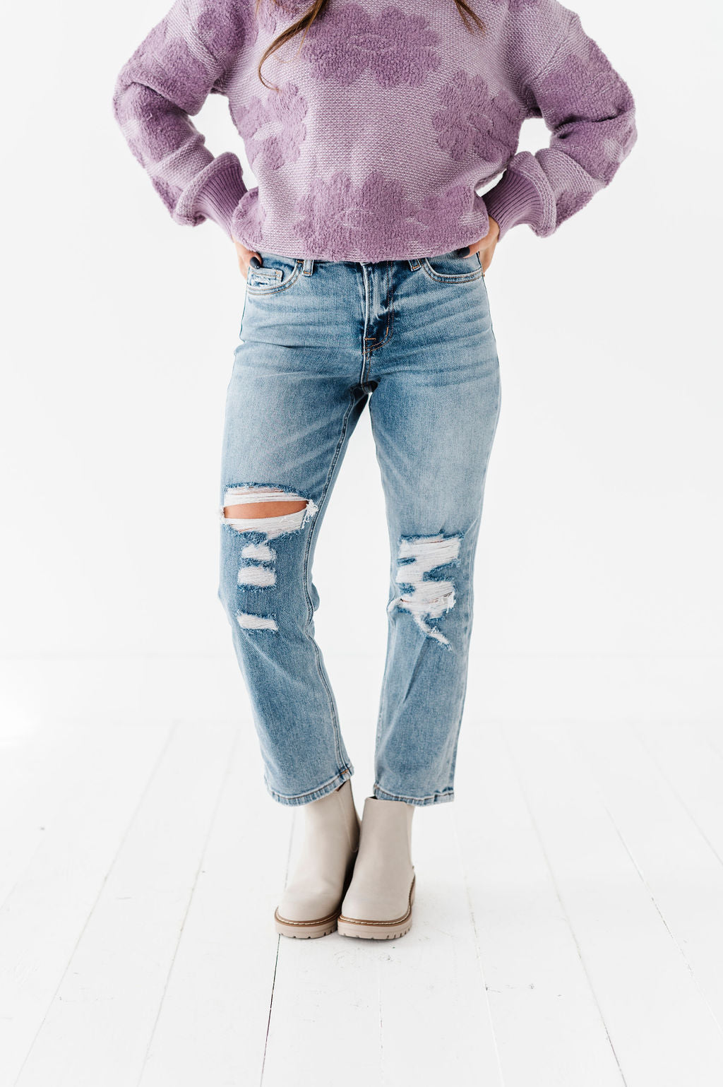 - Distressed knee and coin pocket