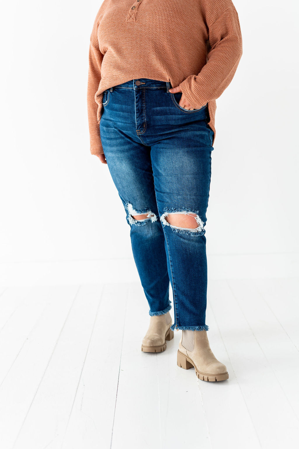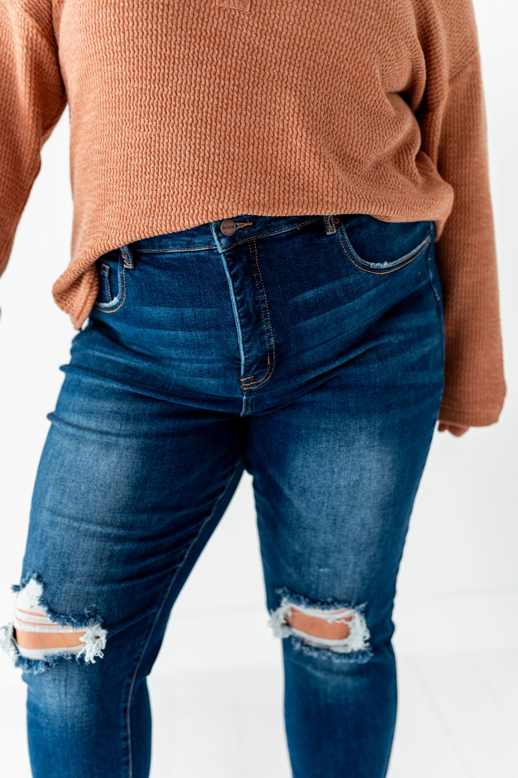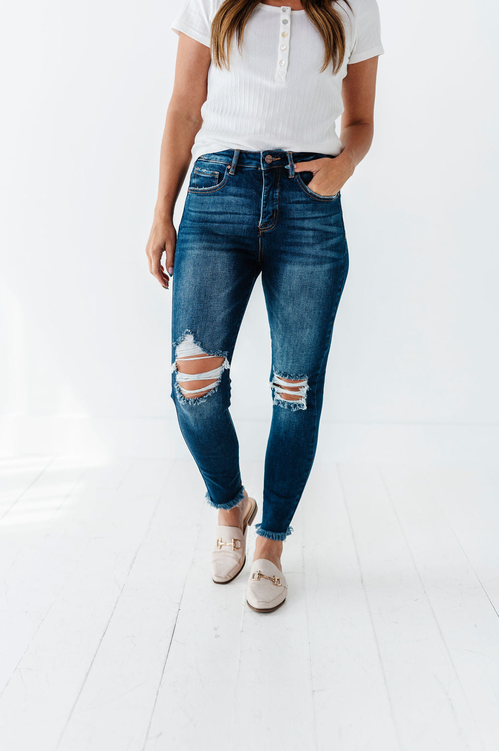 - Distressed knee