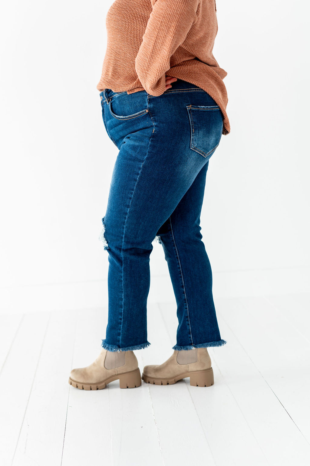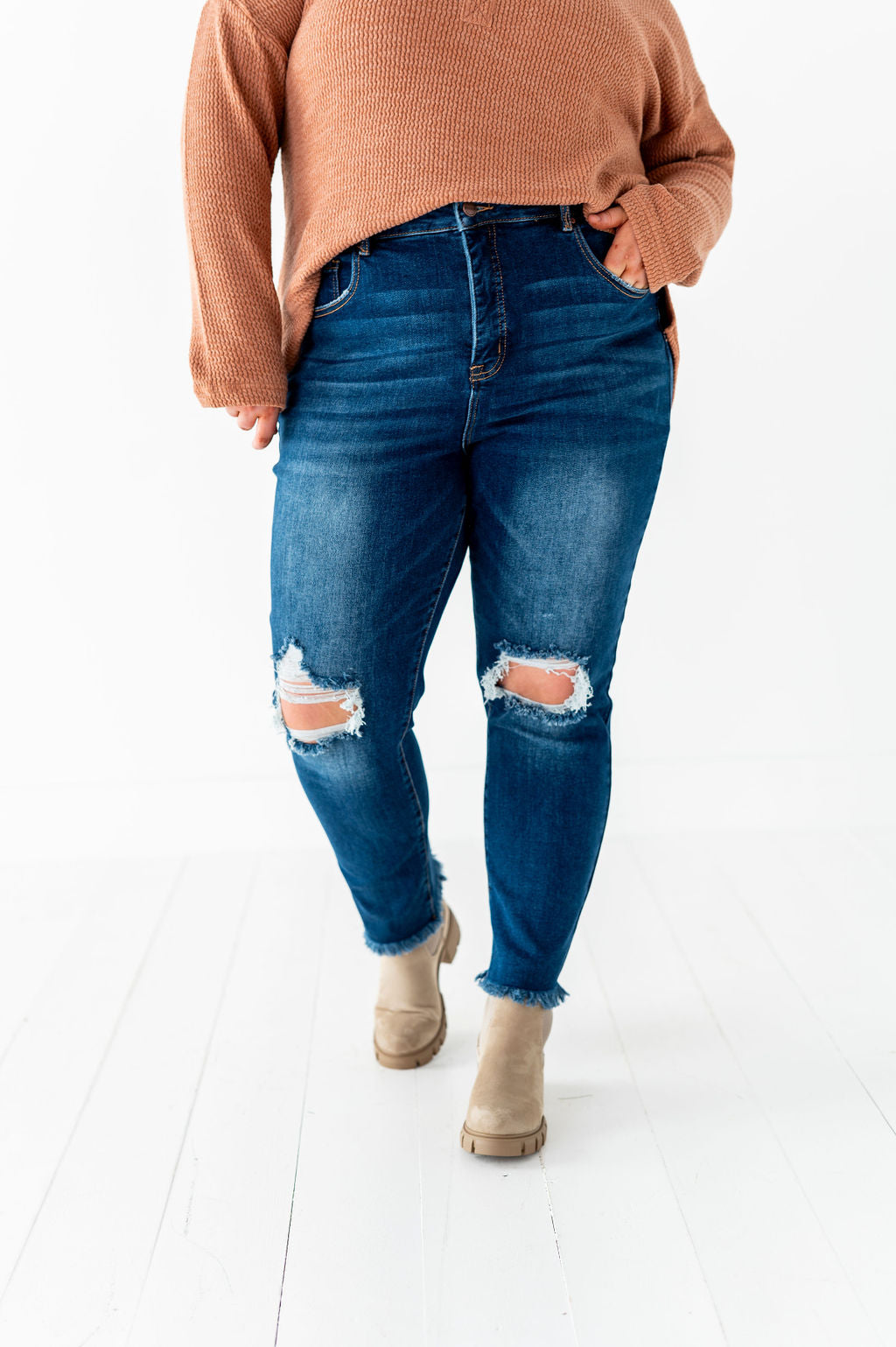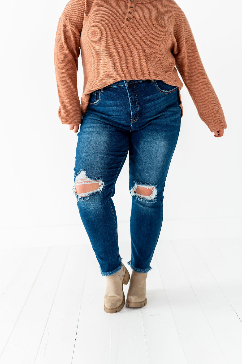 - Distressed knee