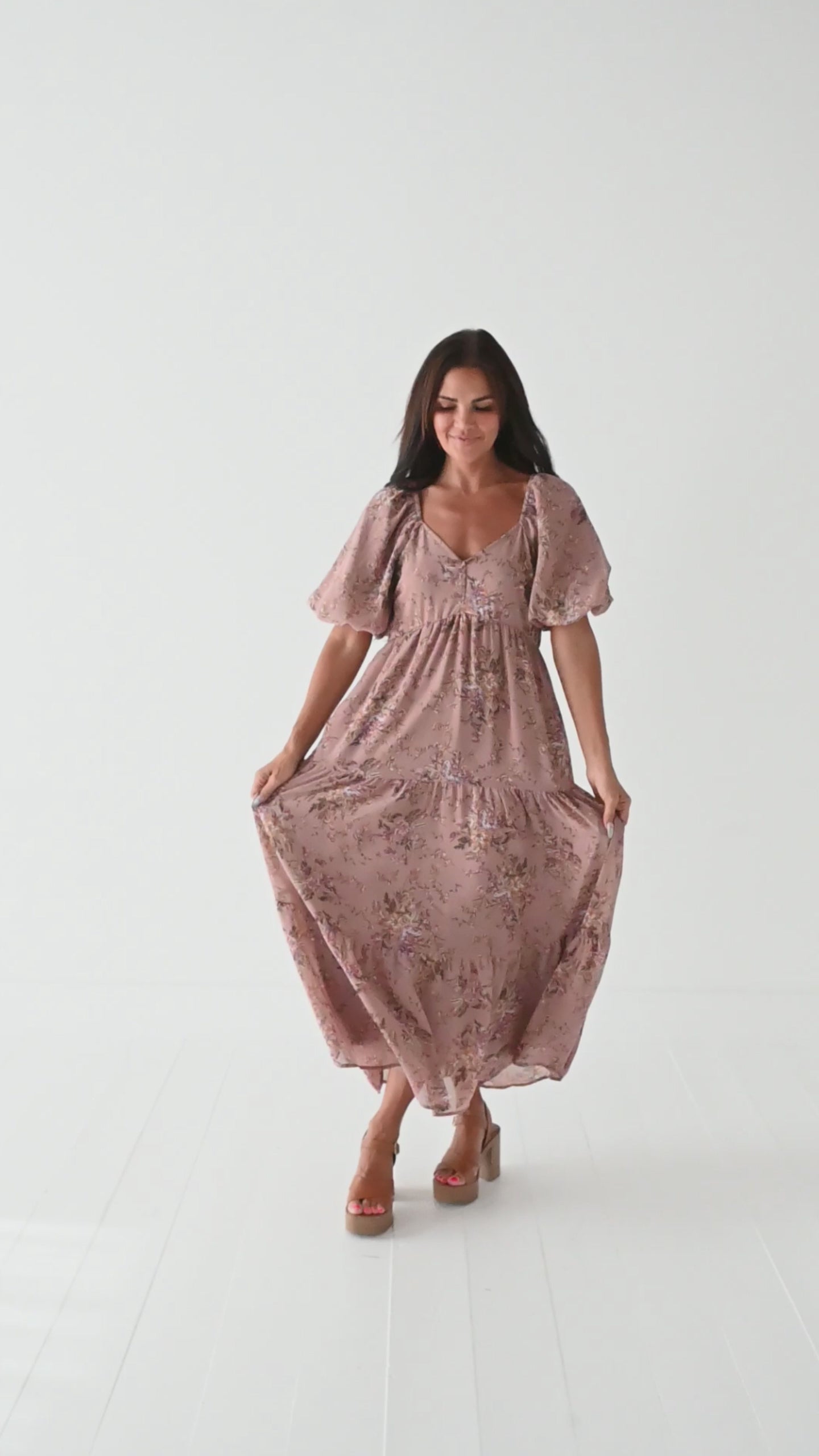 • Dusty mauve with lavender, mustard, sage and white floral print