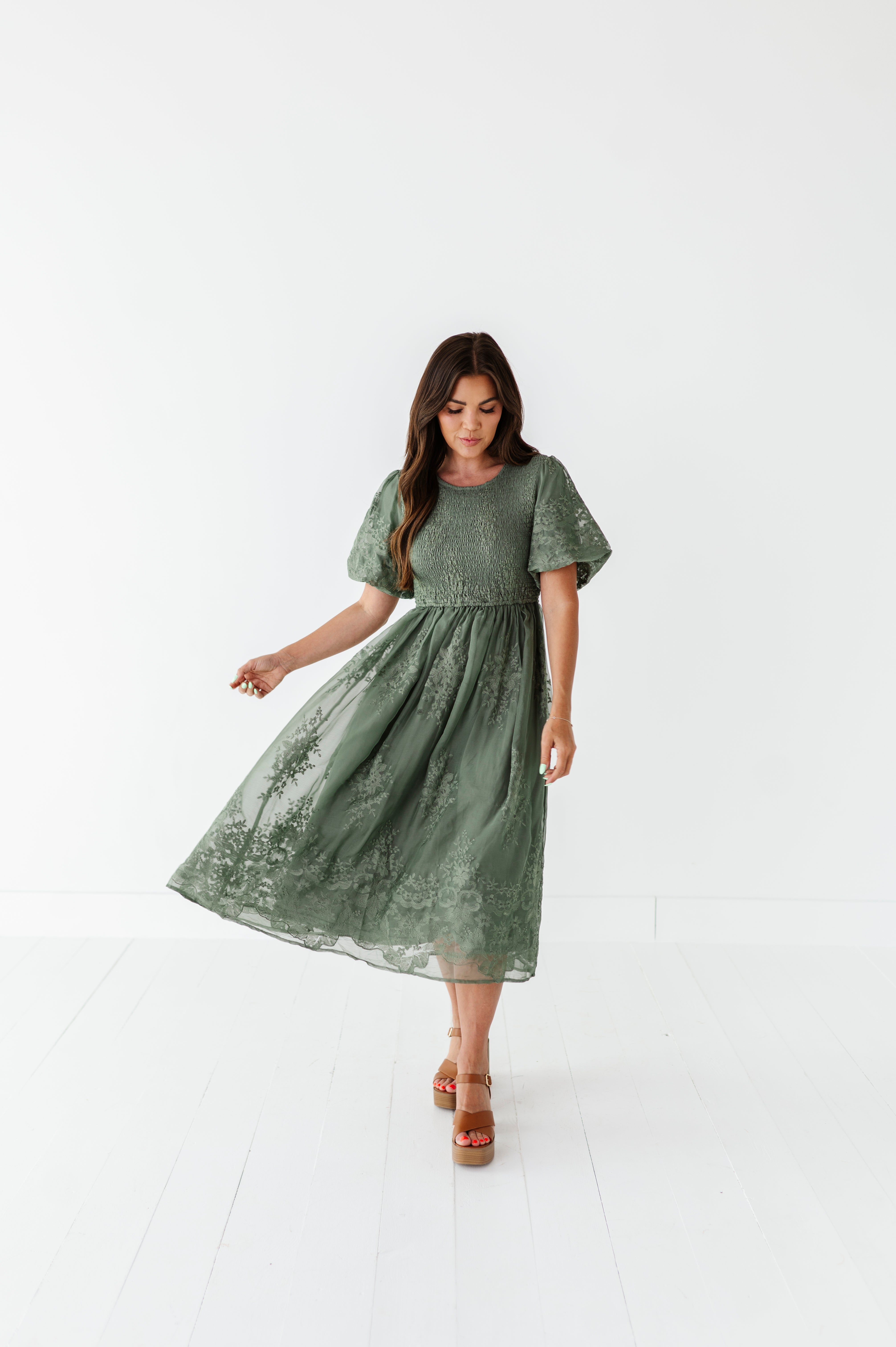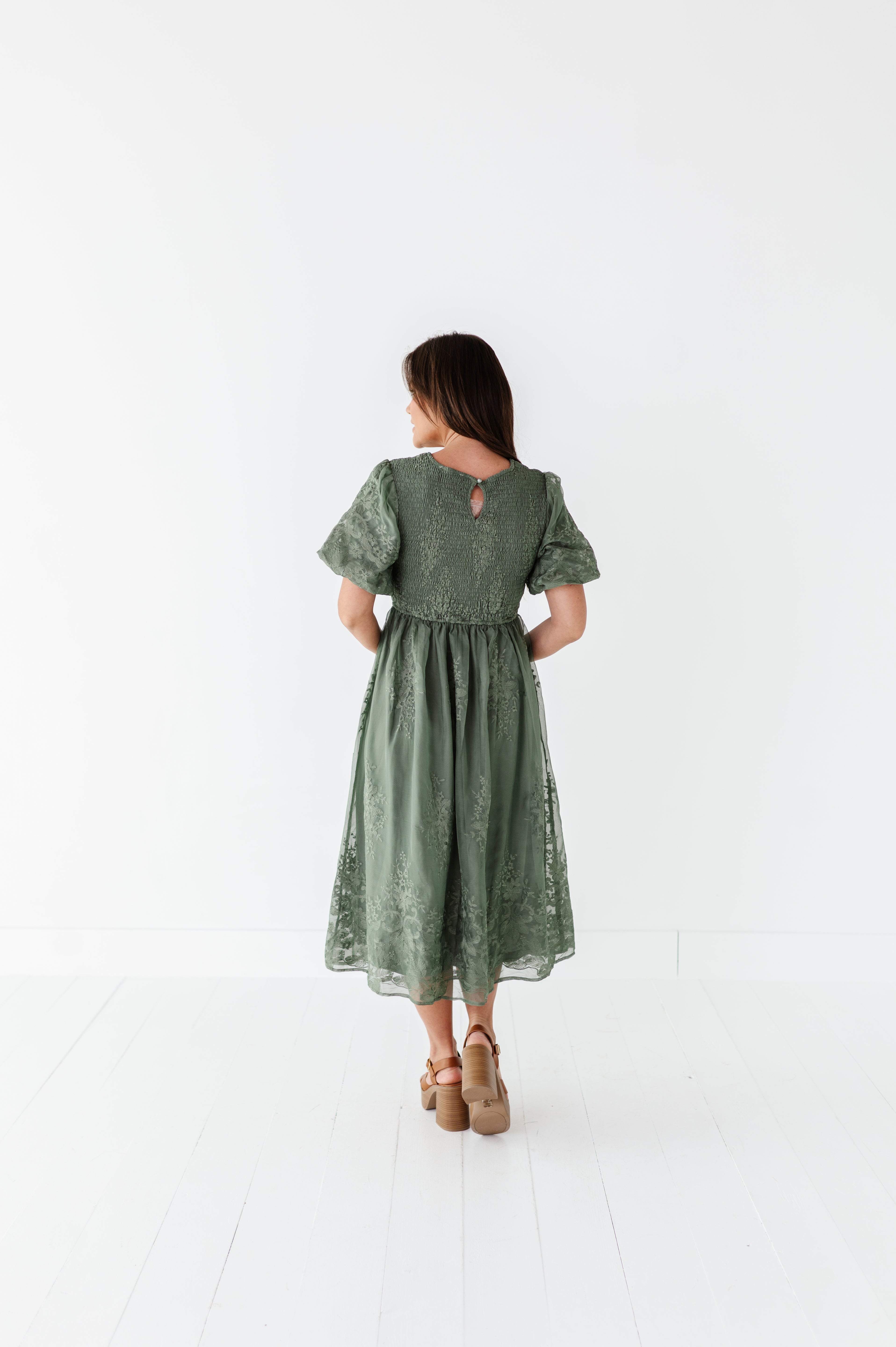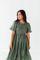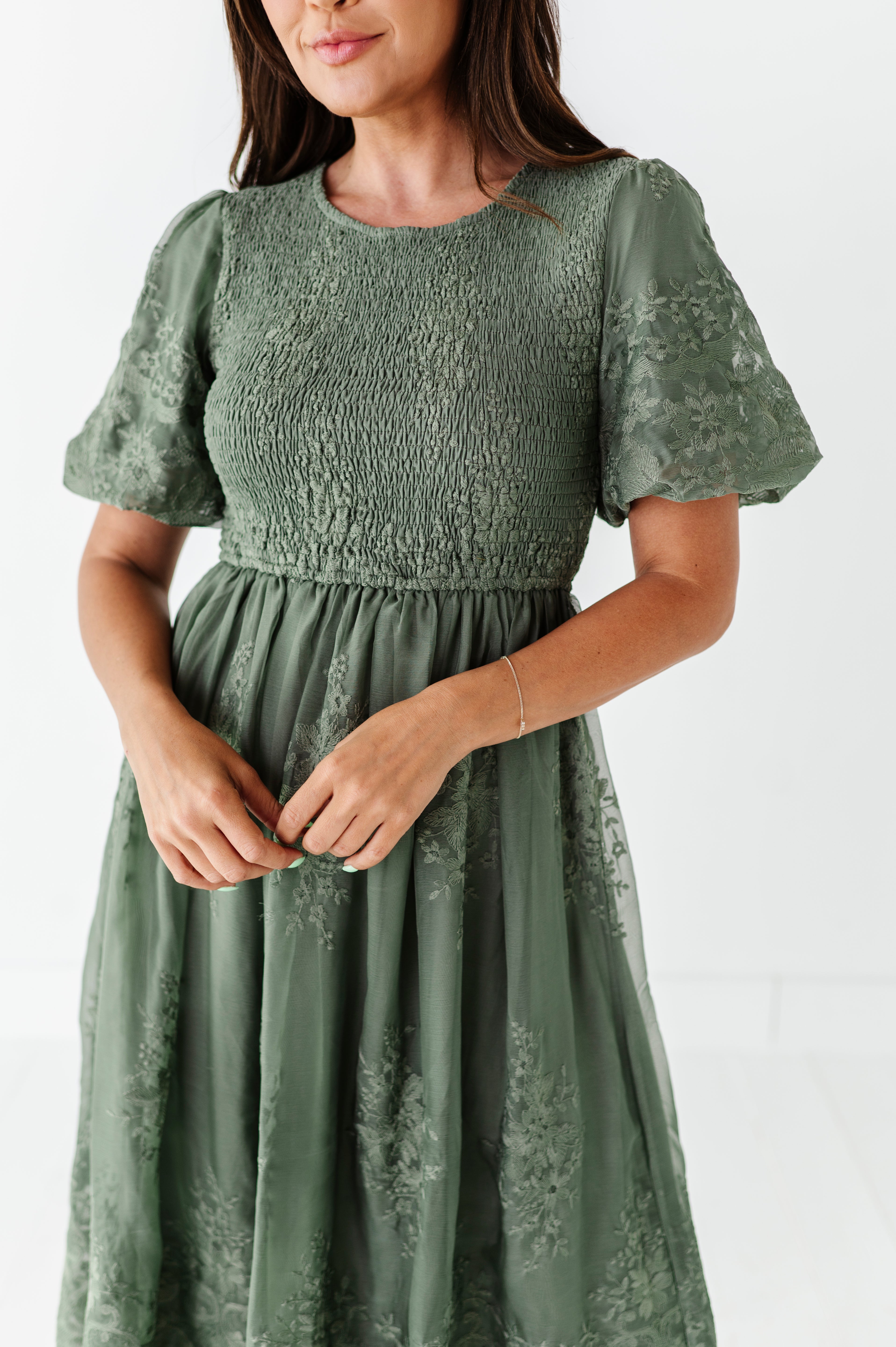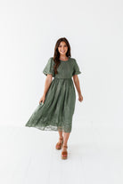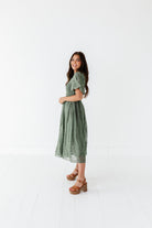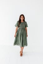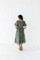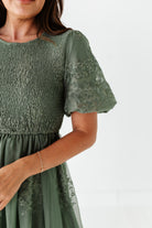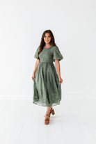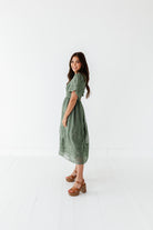 Mia Embroidered Smocked Dress in Sage