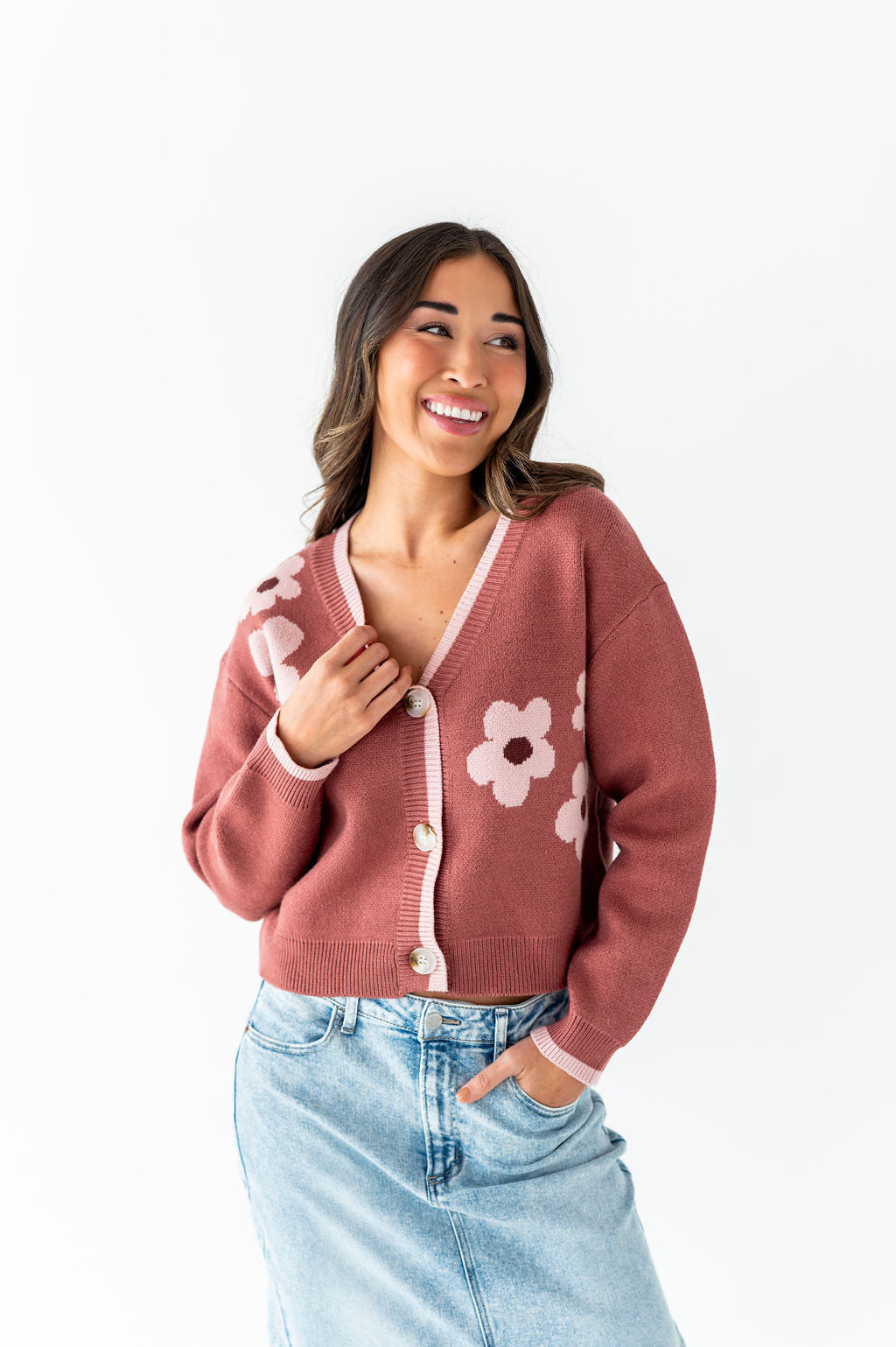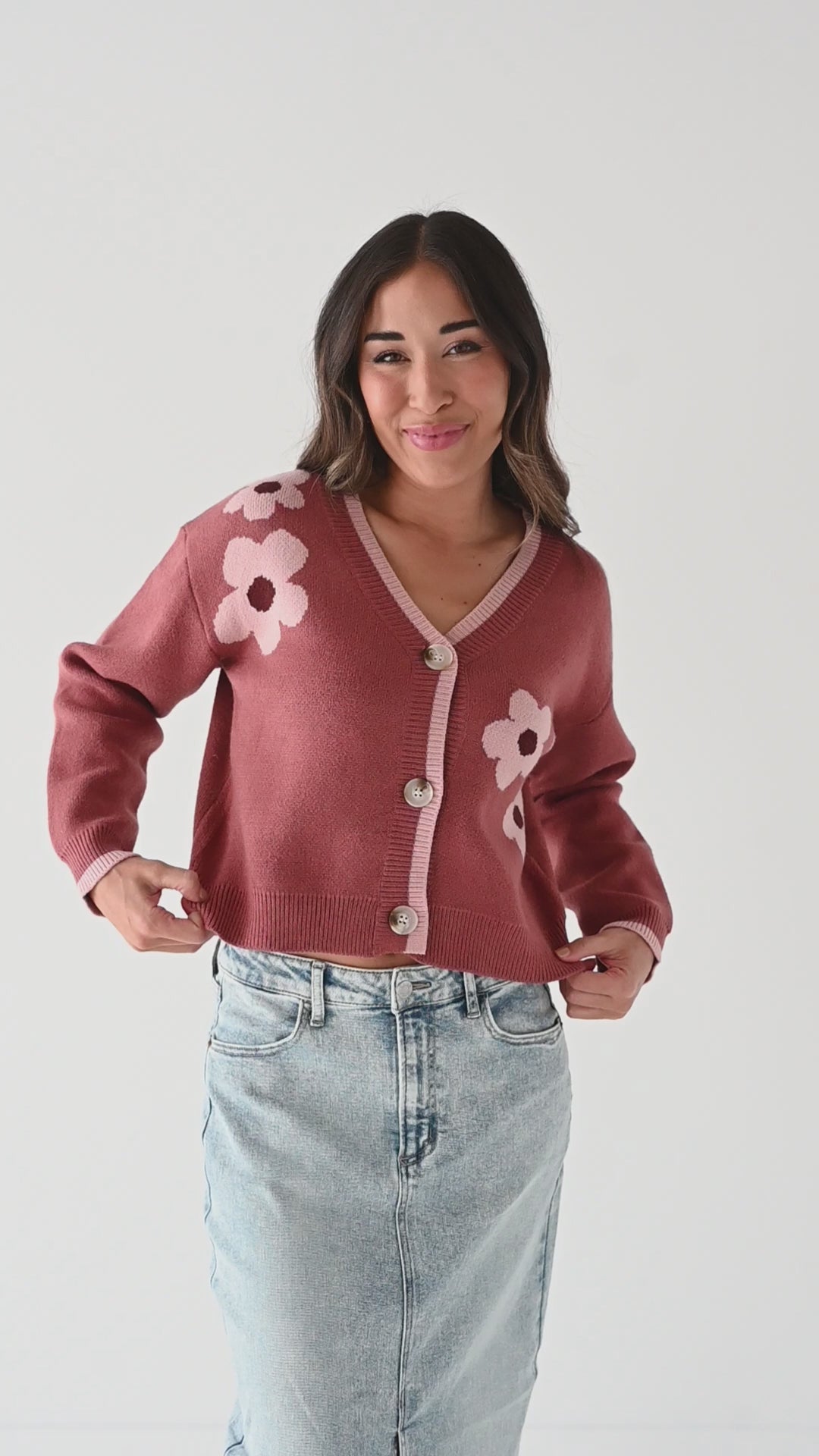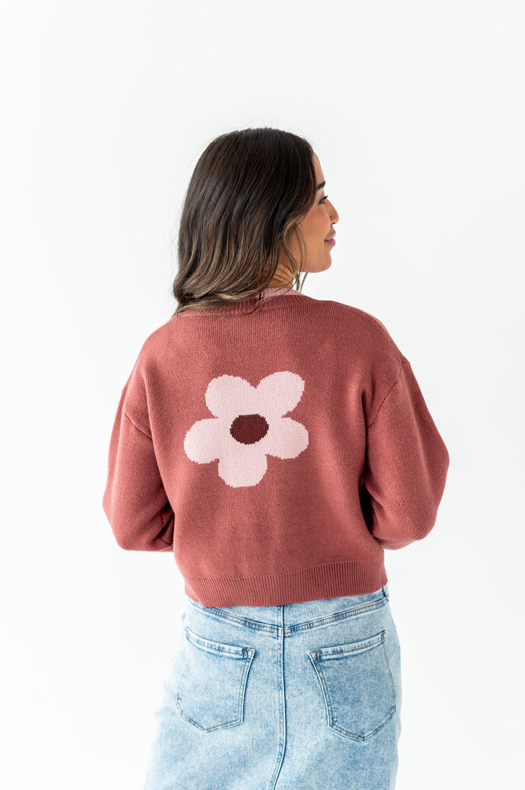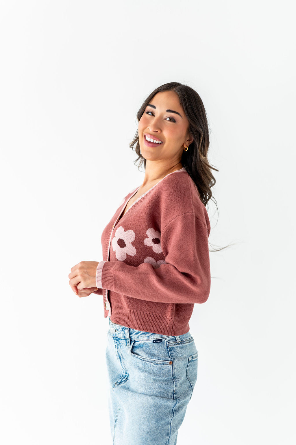 Tallulah Crop Cardigan in Rosewood - Size Large Left