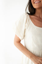 - Short puff sleeves with elastic