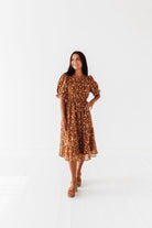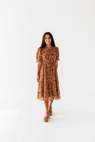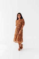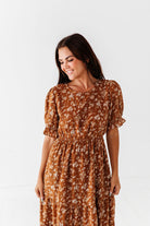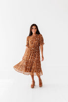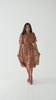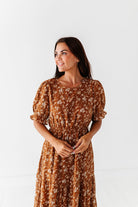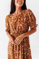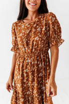 • Brown with white, light pink, rust-brown and sage floral printed chiffon