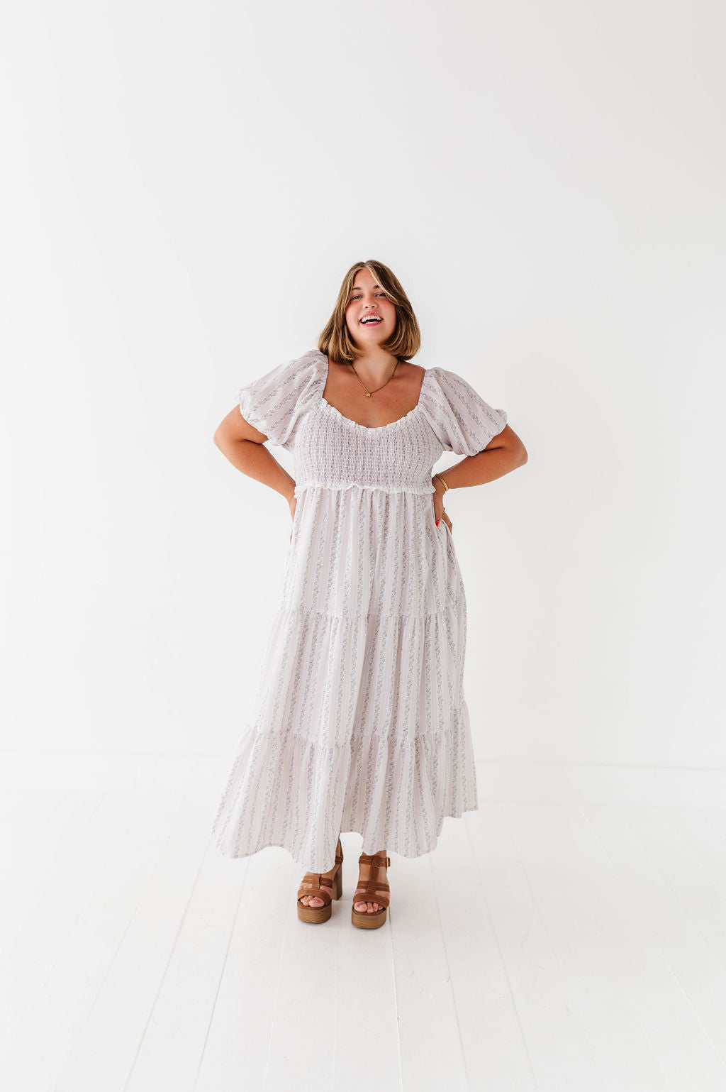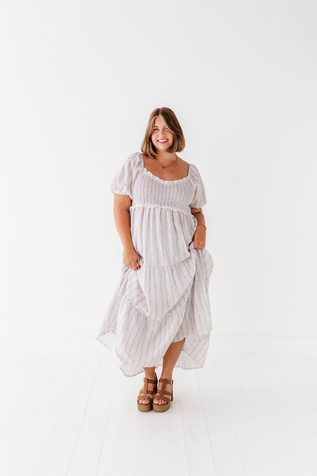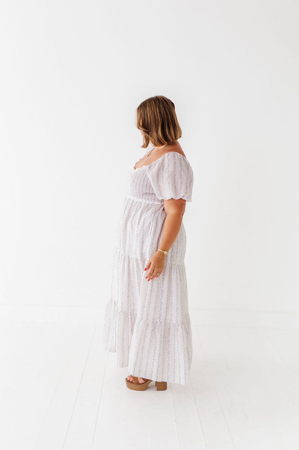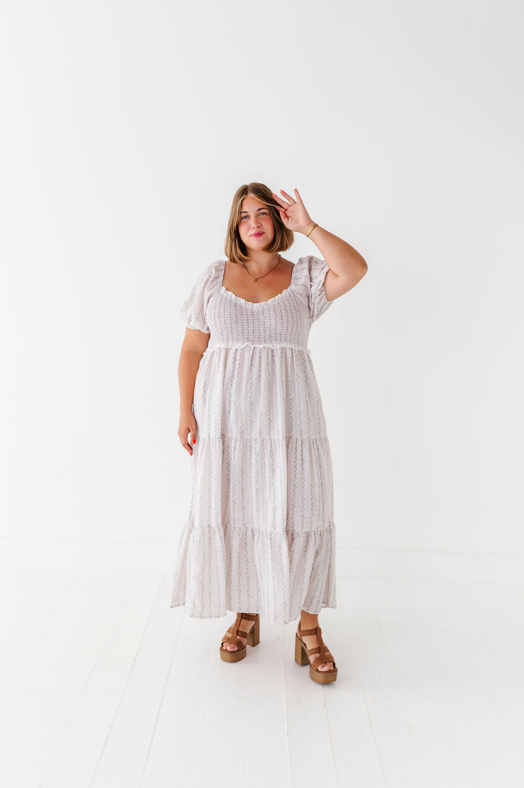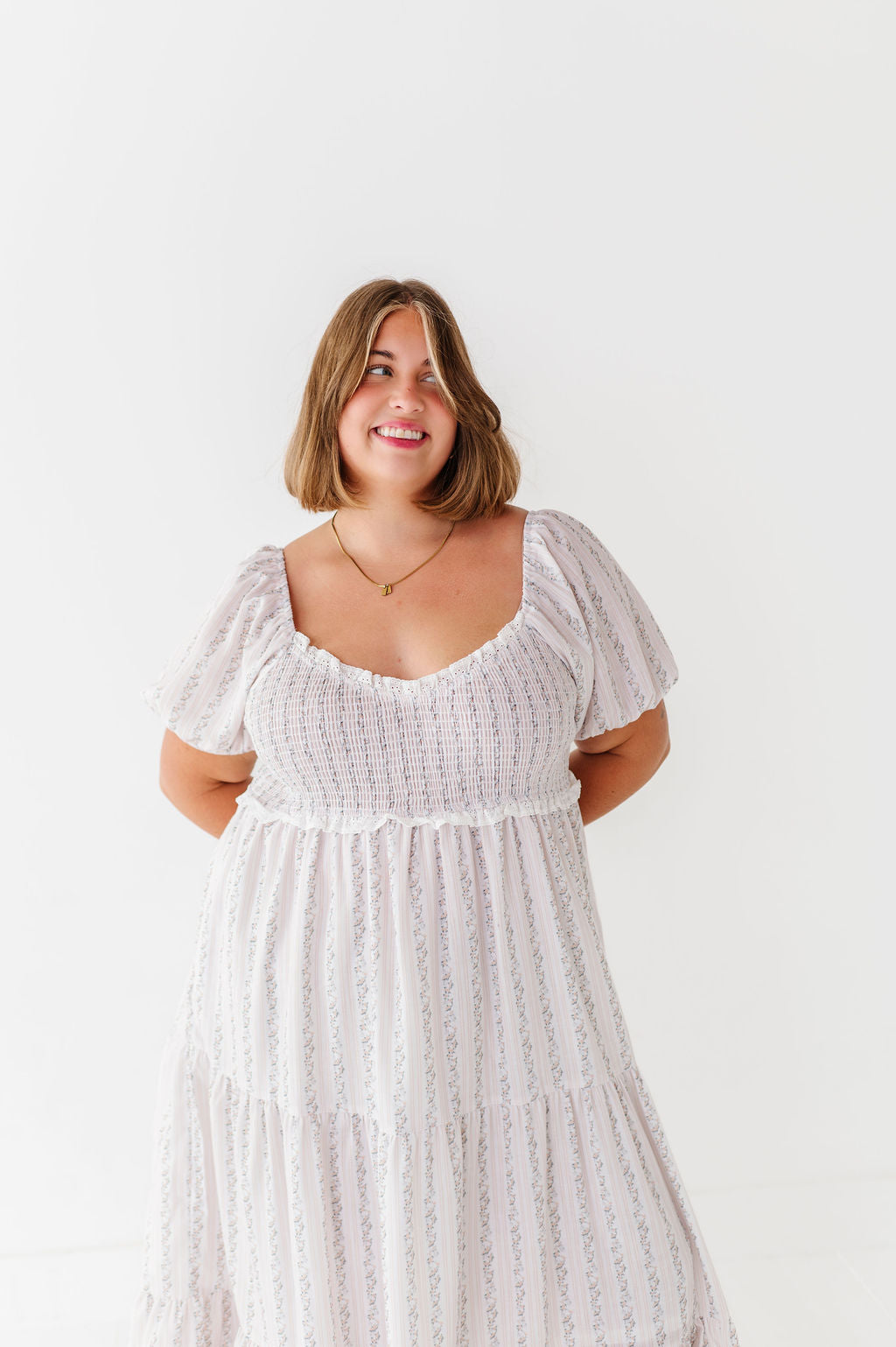 - Ivory with dusty yellow, dark sage and light taupe floral and stripe print