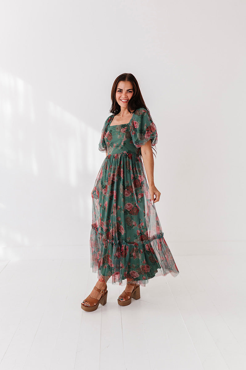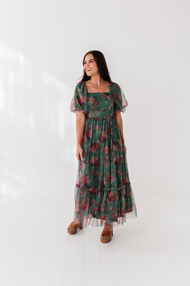 Vivienne Evergreen Floral Dress