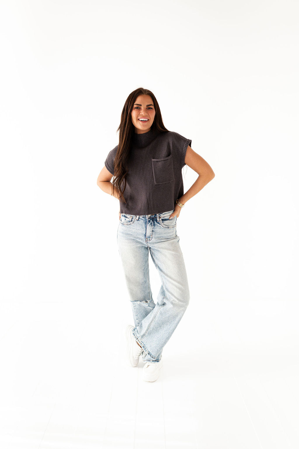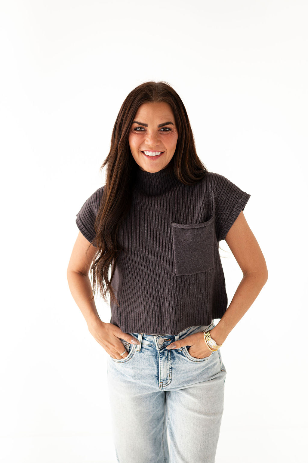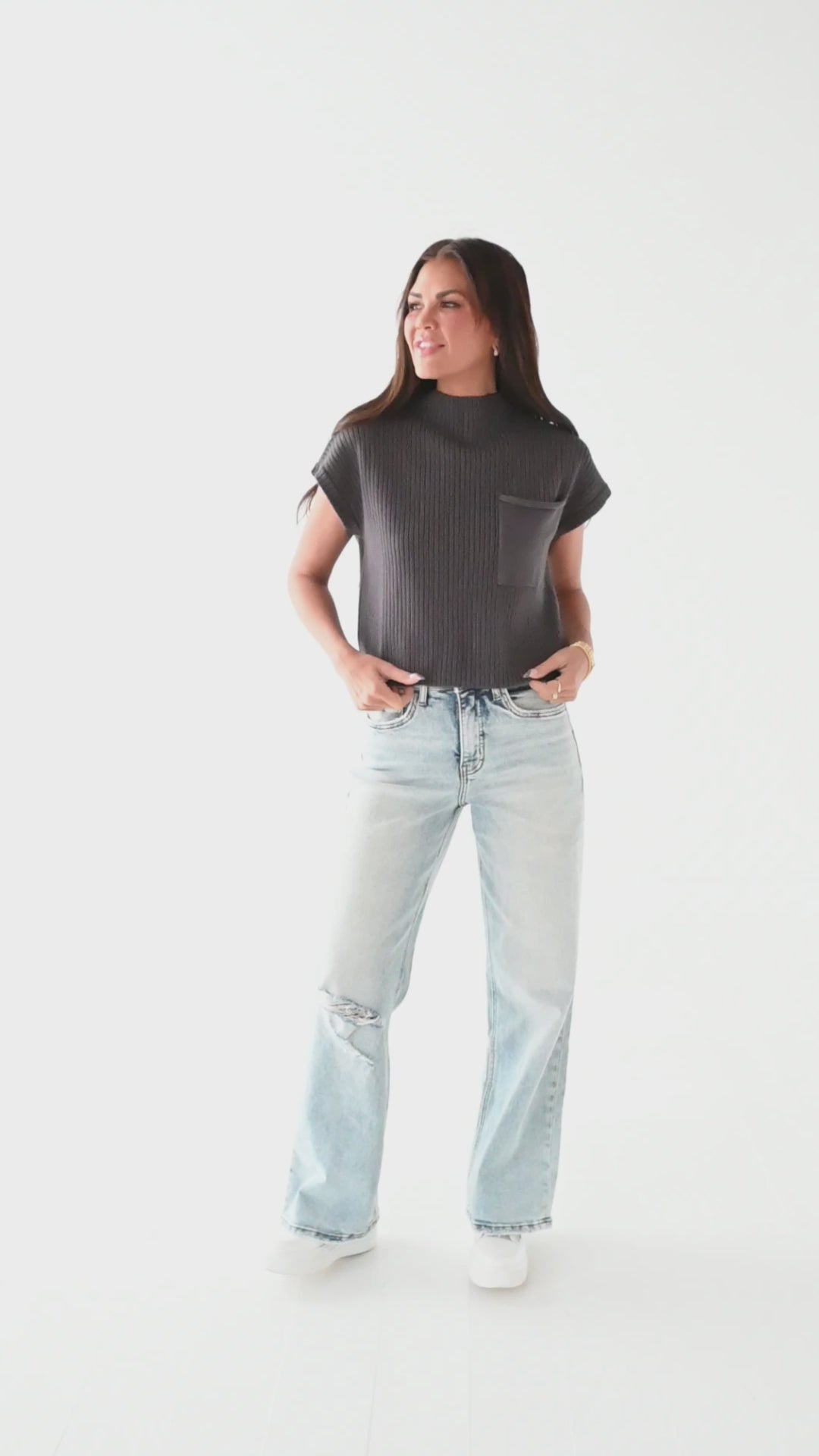 Rainee Sweater Top in Charcoal