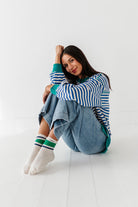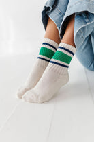 Varsity Stripe Crew Socks in Green