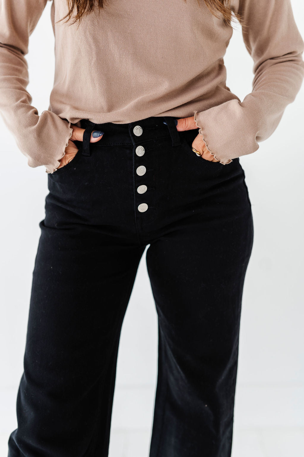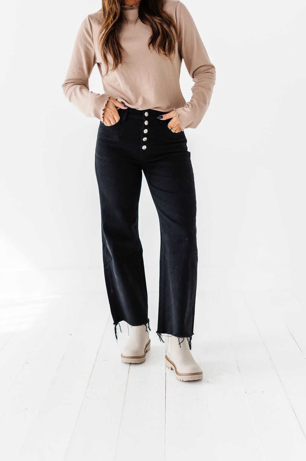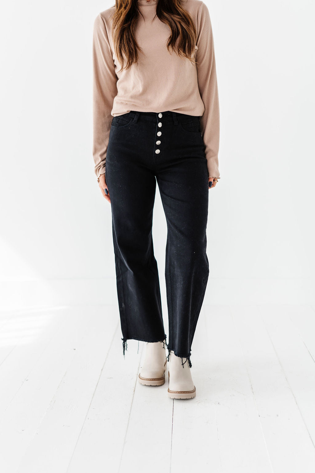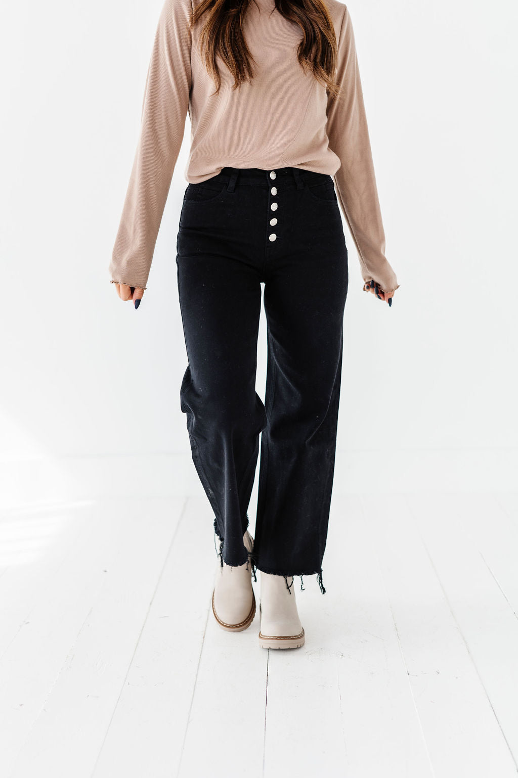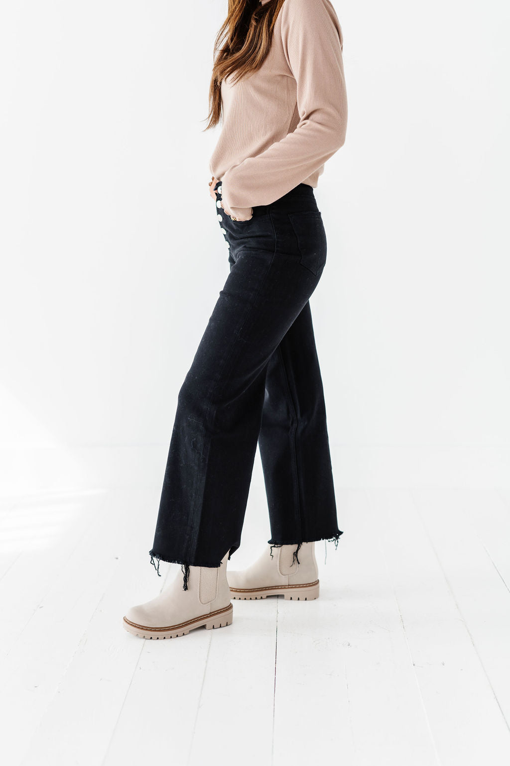 - Cropped distressed hem