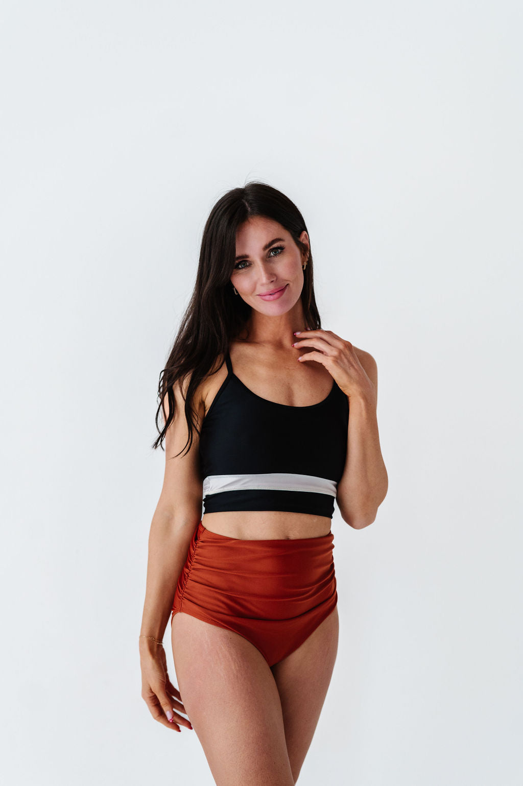High Waisted Ruched Bottoms in Rust