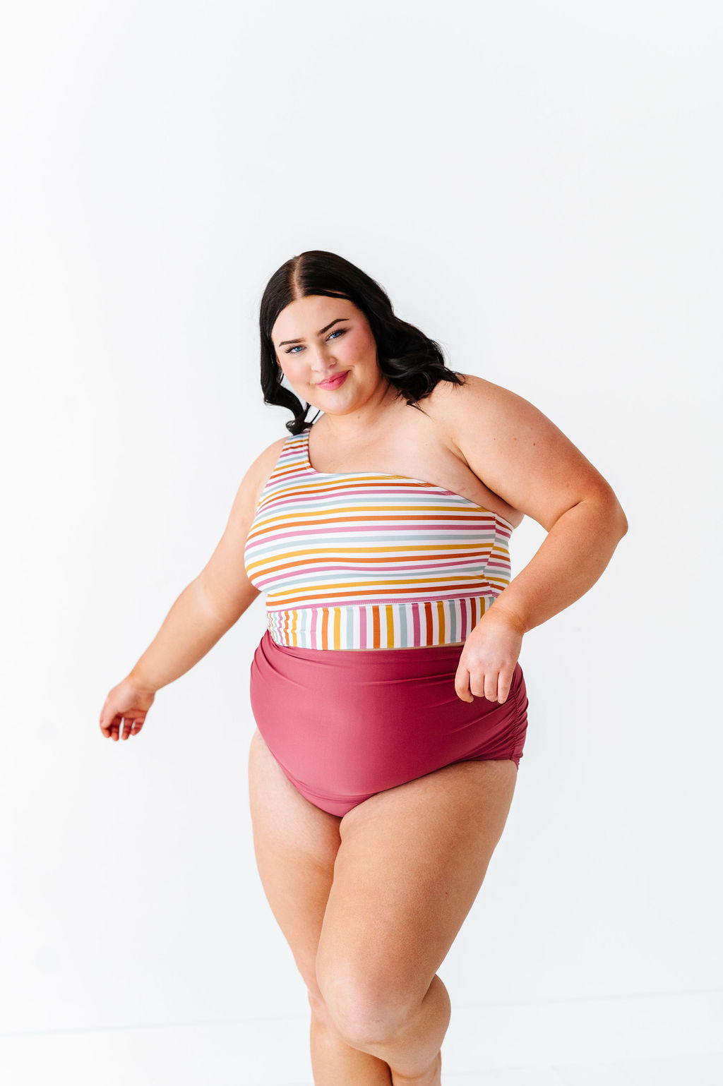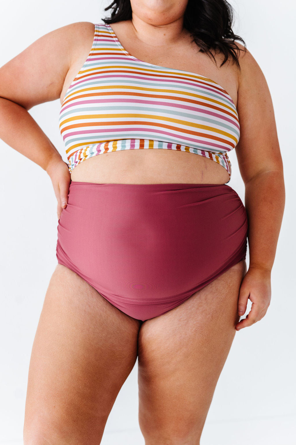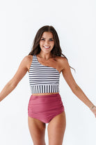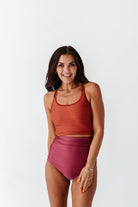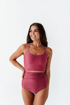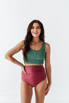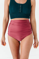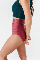 High Waisted Ruched Bottoms in Dark Mauve - Size XXS, 3XL, & 4XL Left
