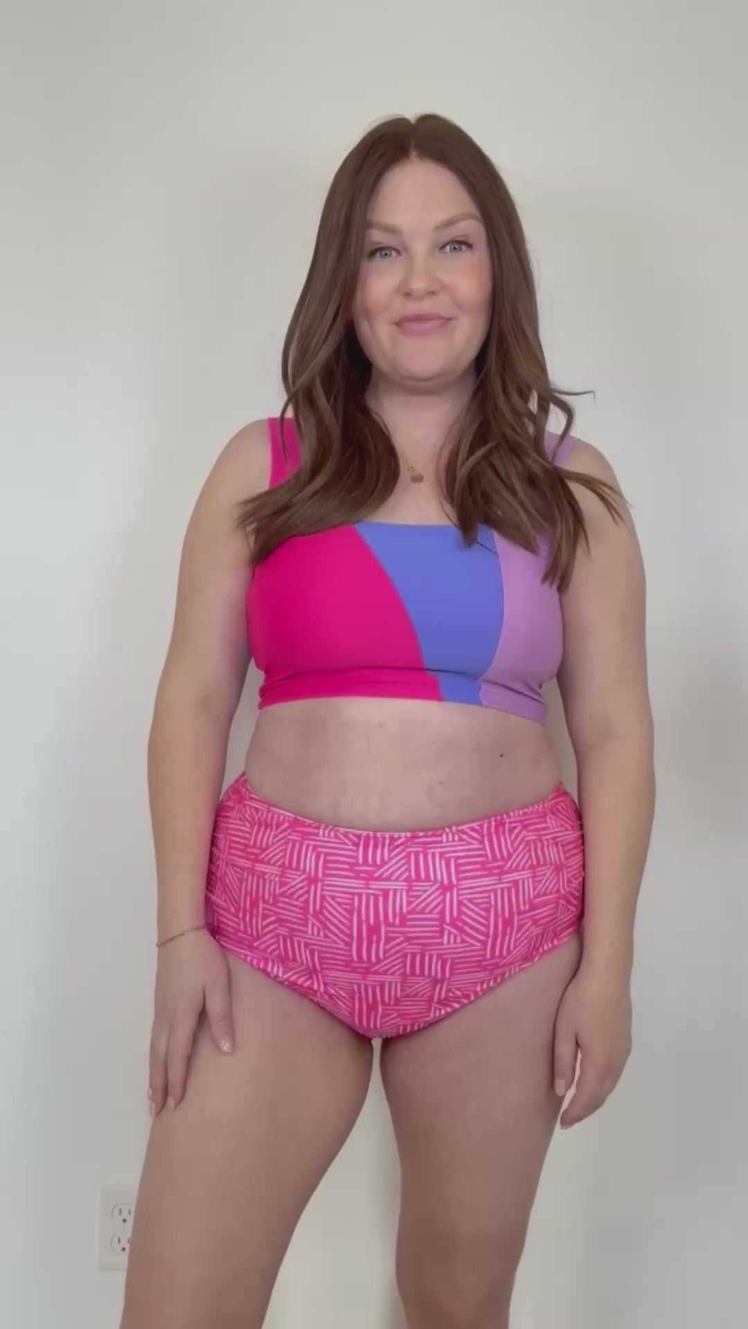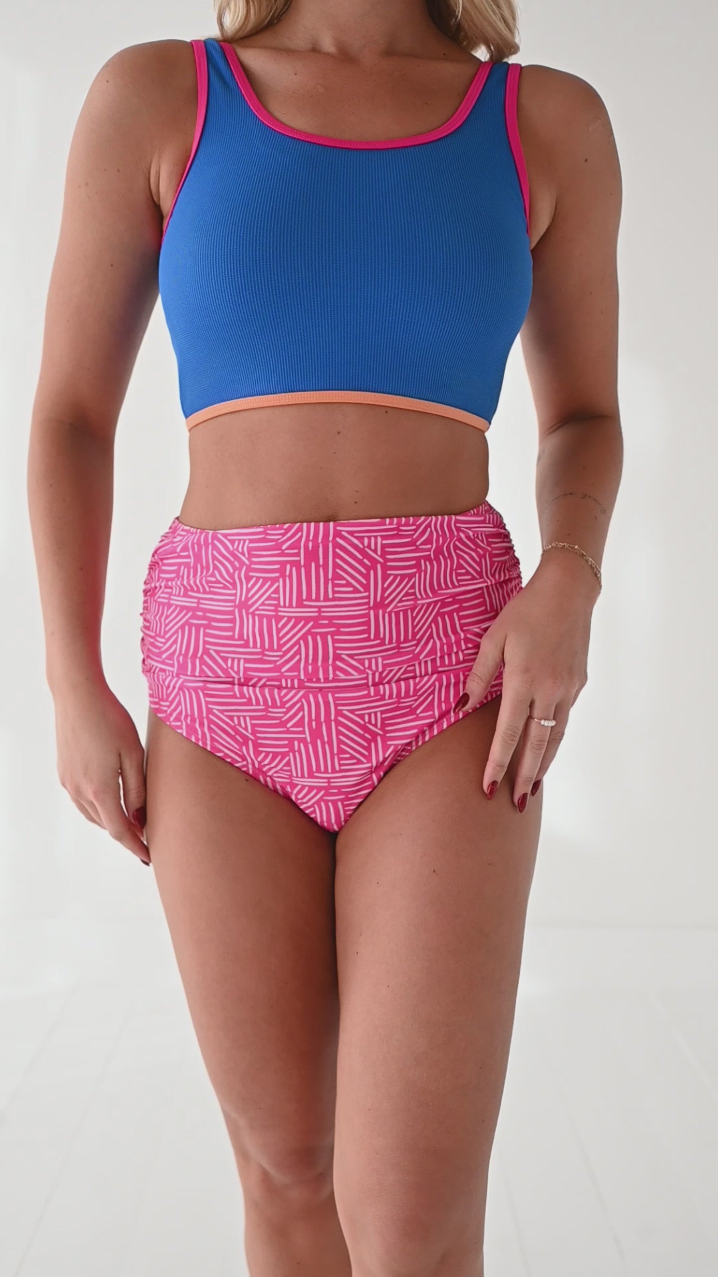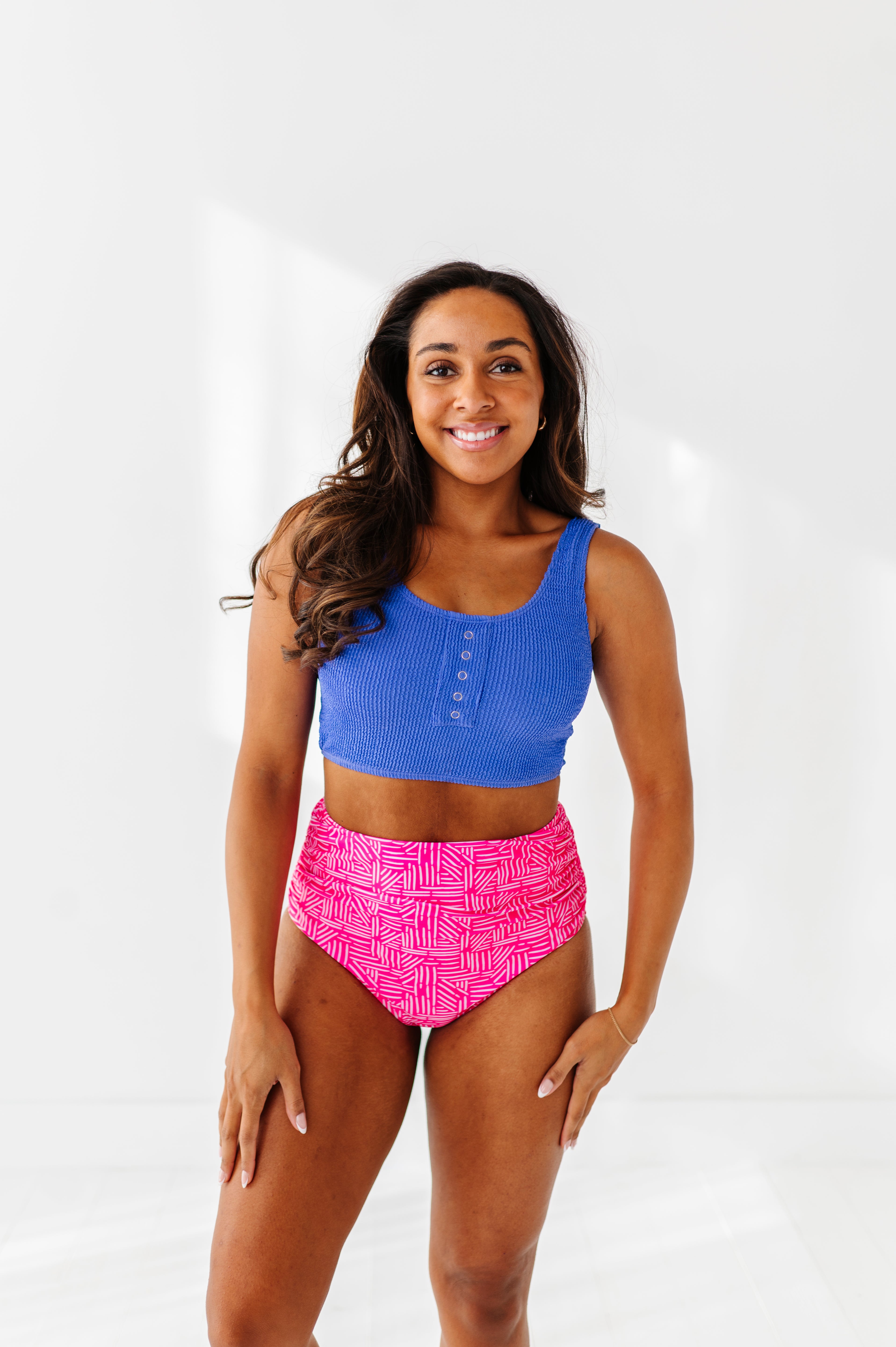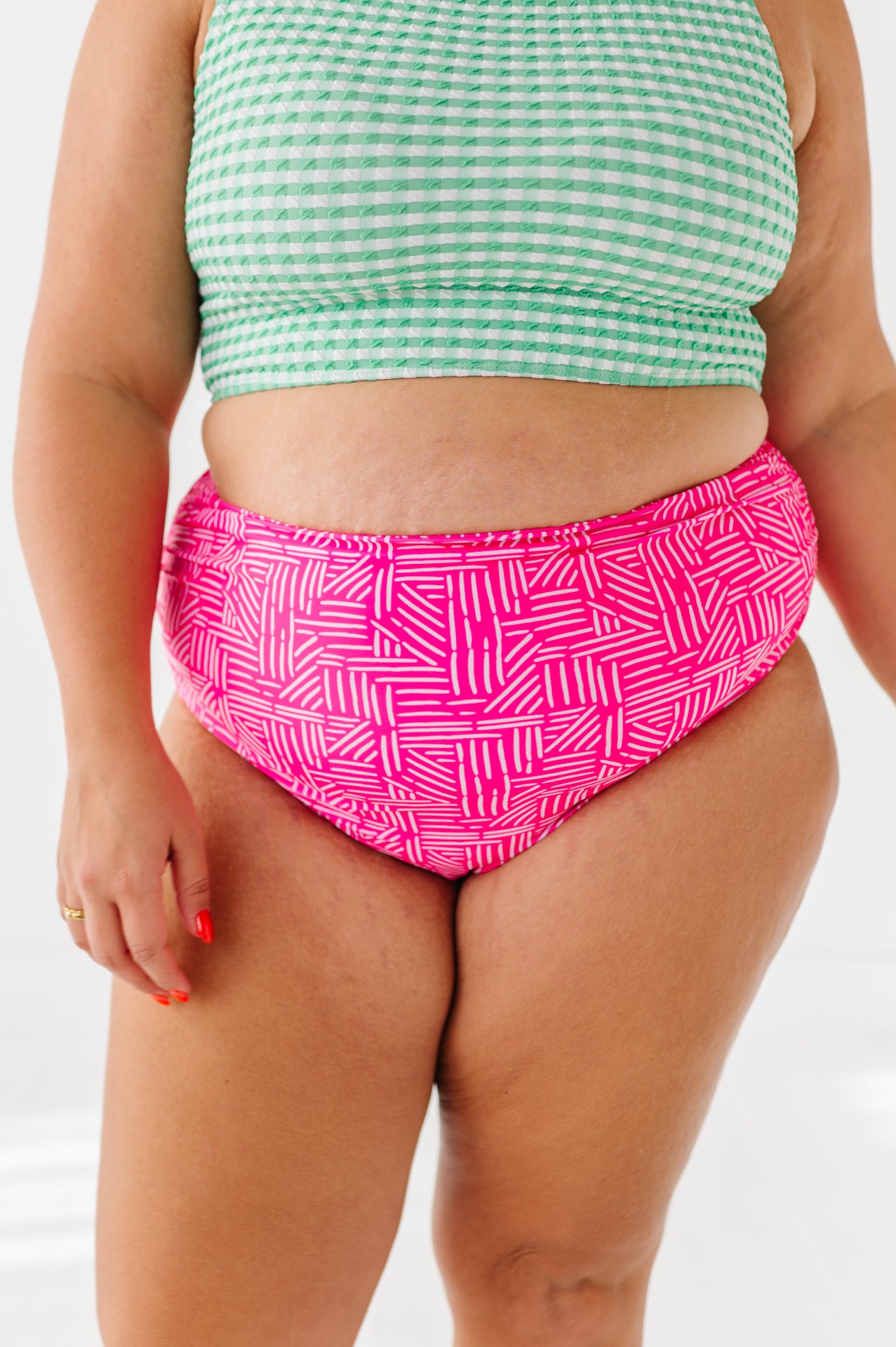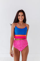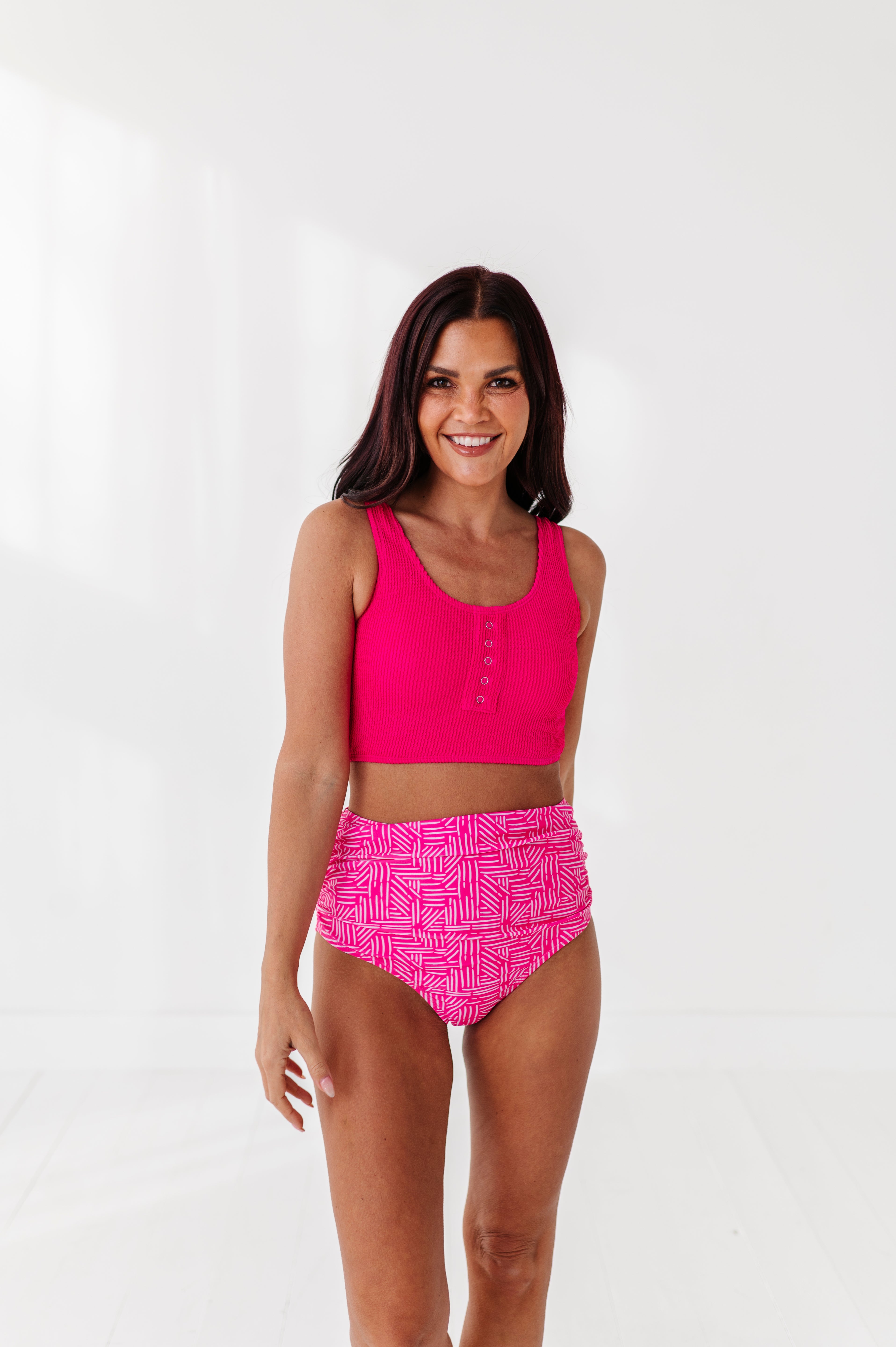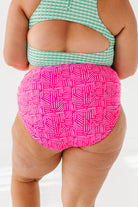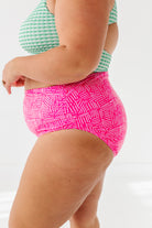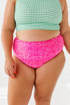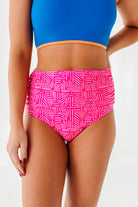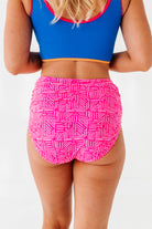 Basic Beach Mid Rise Ruched Bottoms in Pink Geo