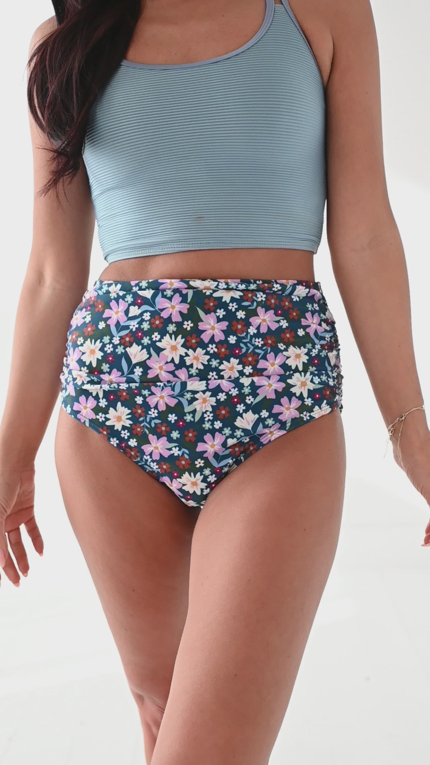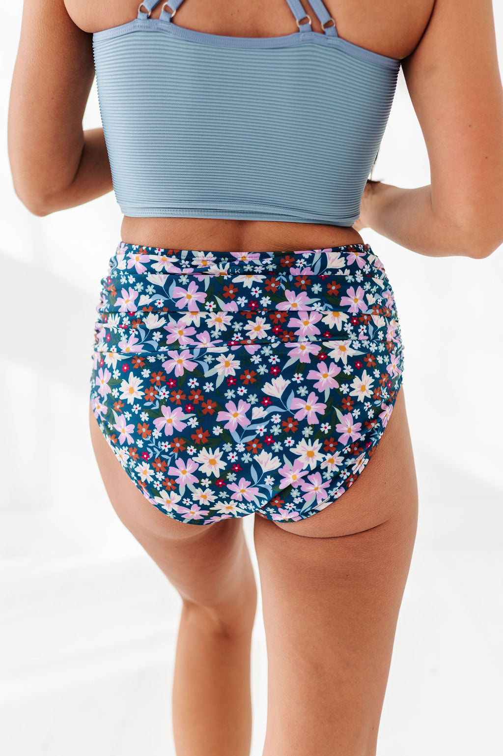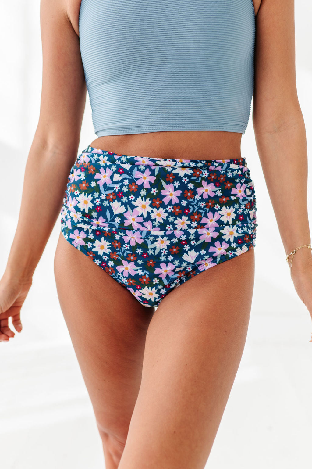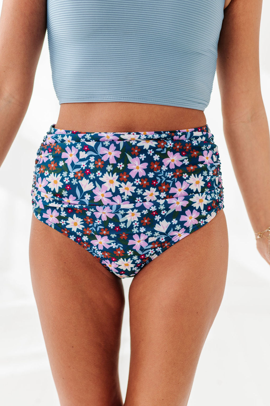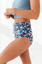 Basic Beach Mid Rise Ruched Bottoms in Santorini Floral