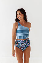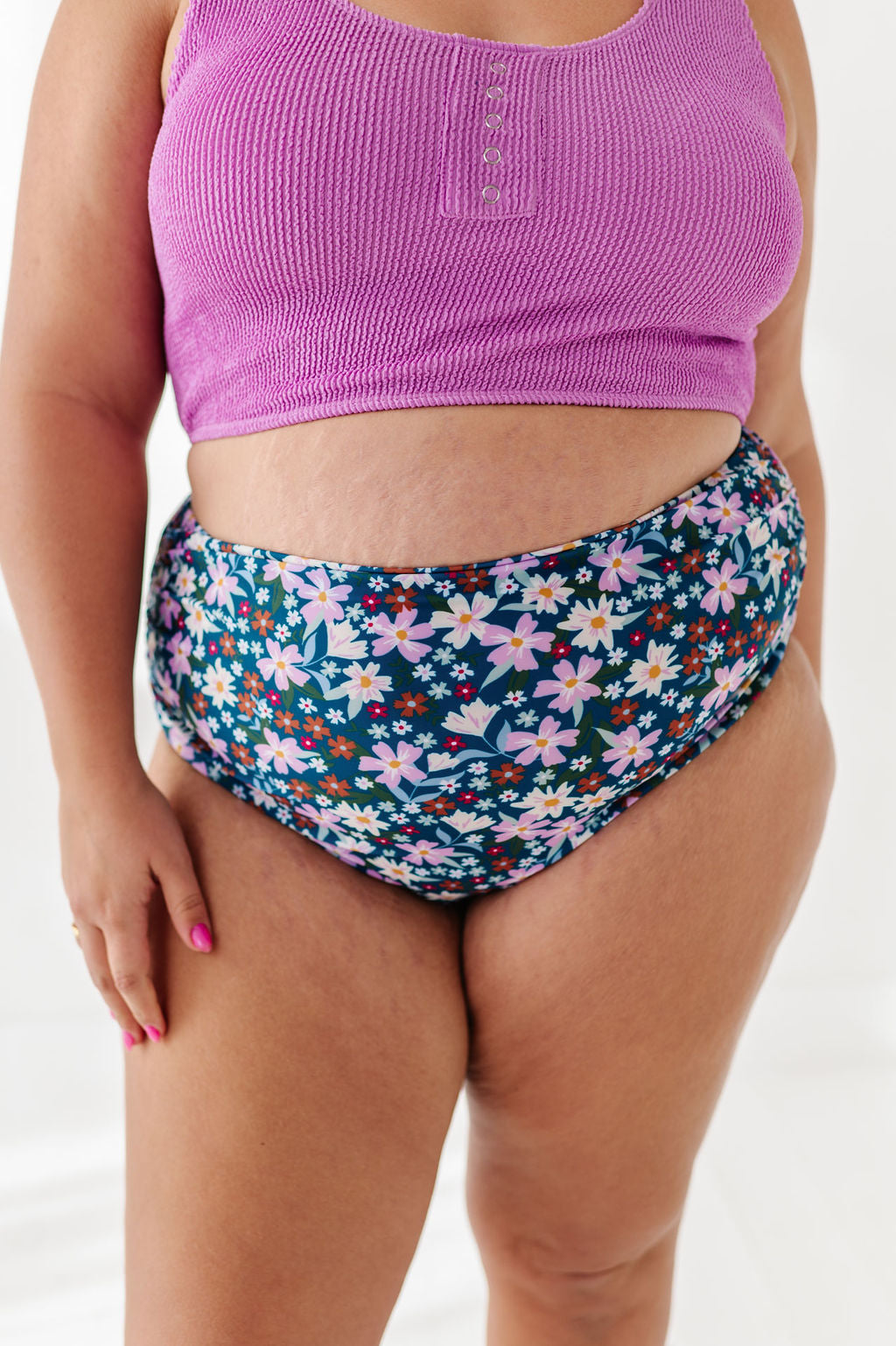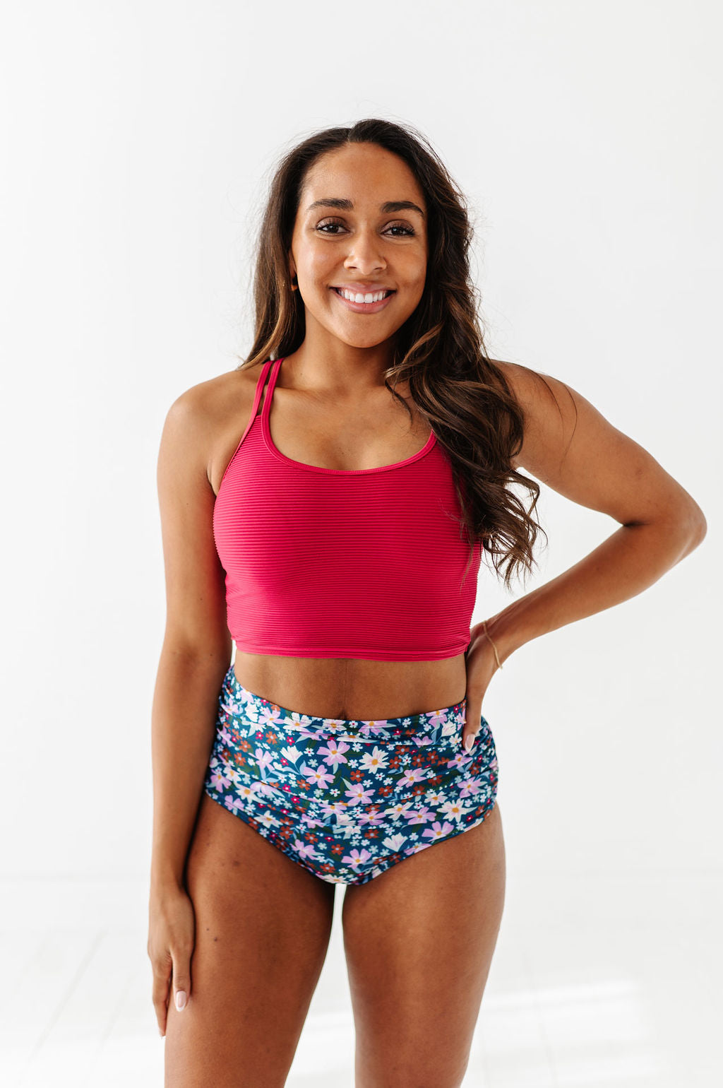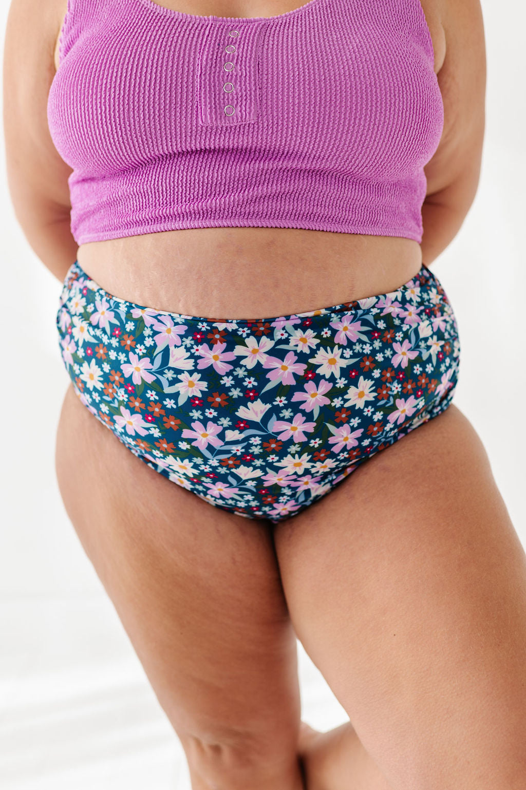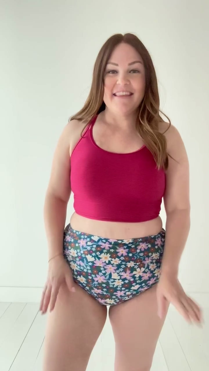 Basic Beach Mid Rise Ruched Bottoms in Santorini Floral