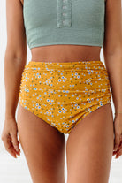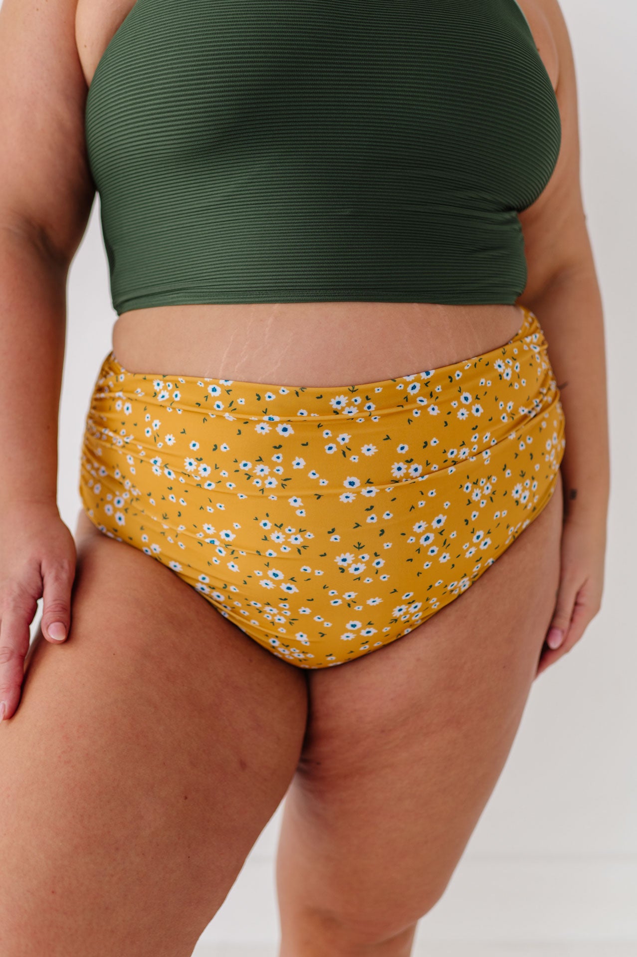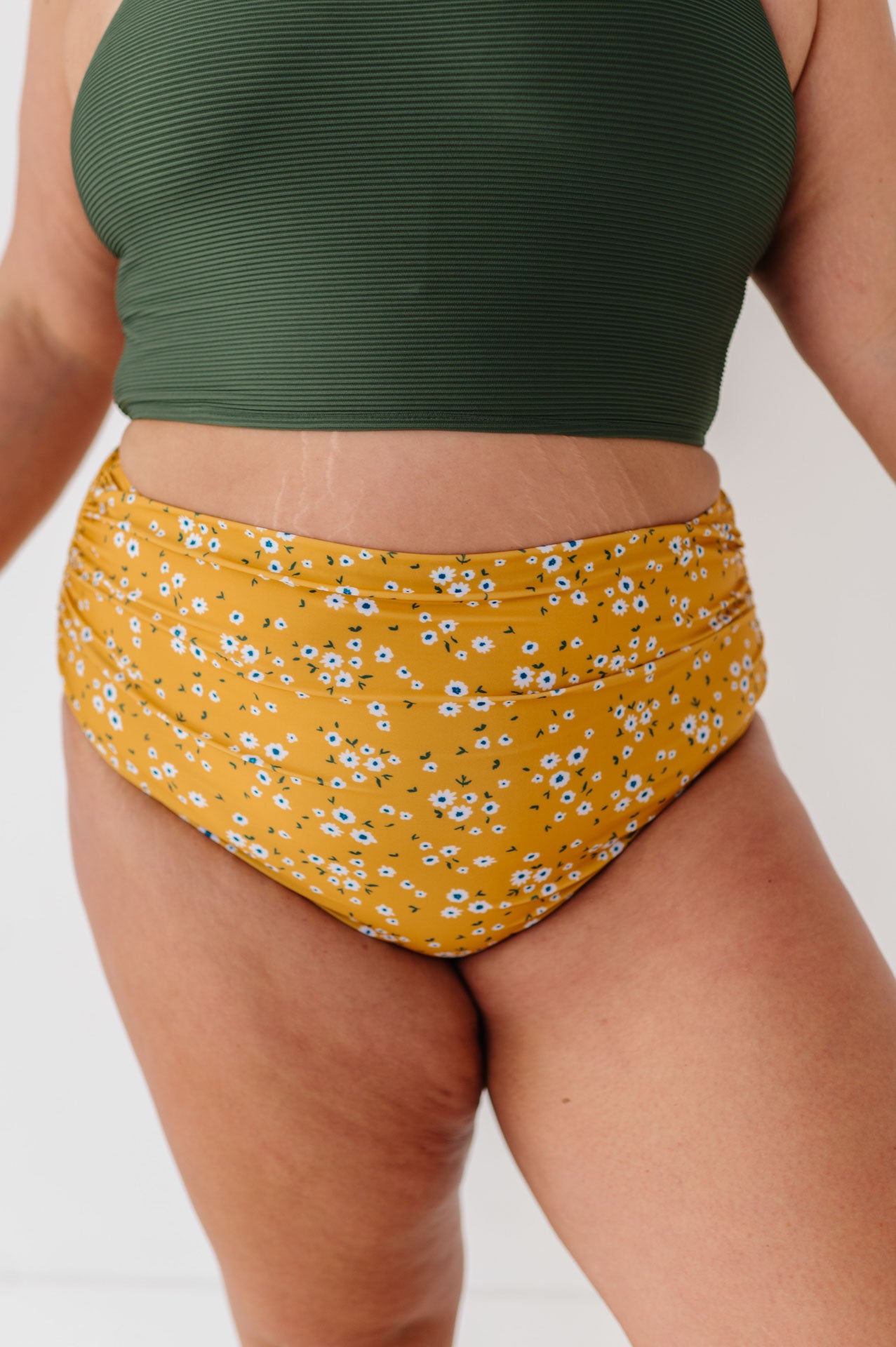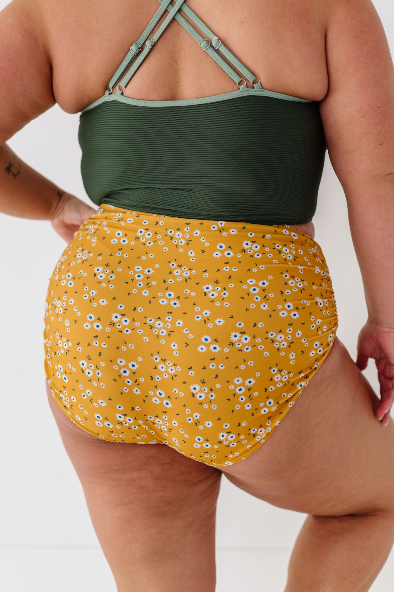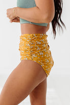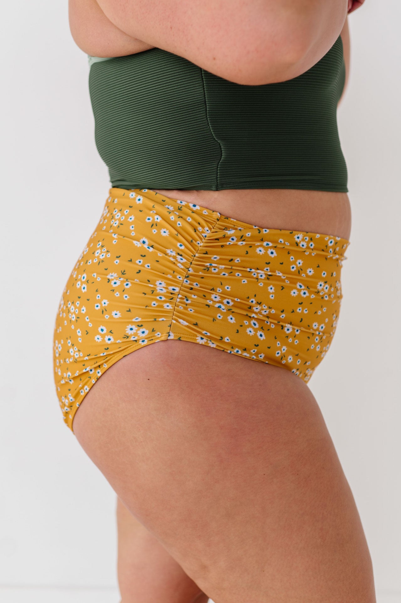 Basic Beach Mid Rise Ruched Bottoms in Sunshine Floral