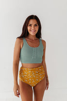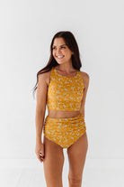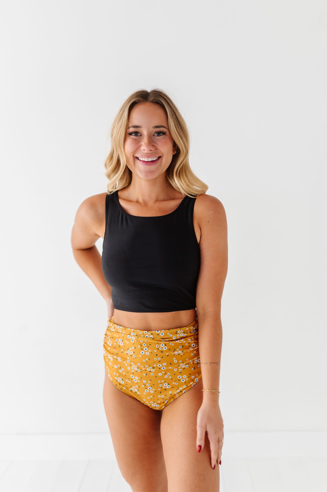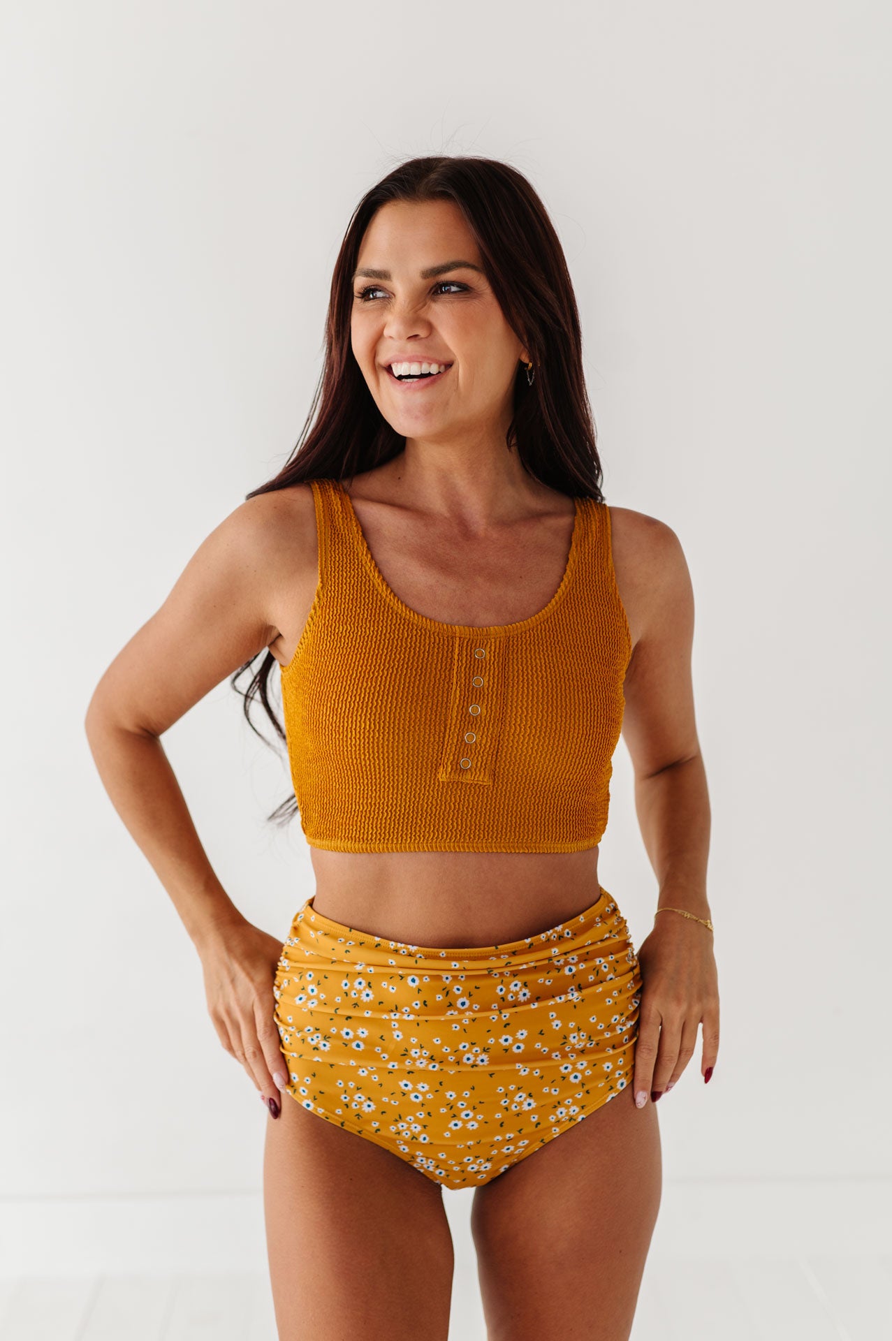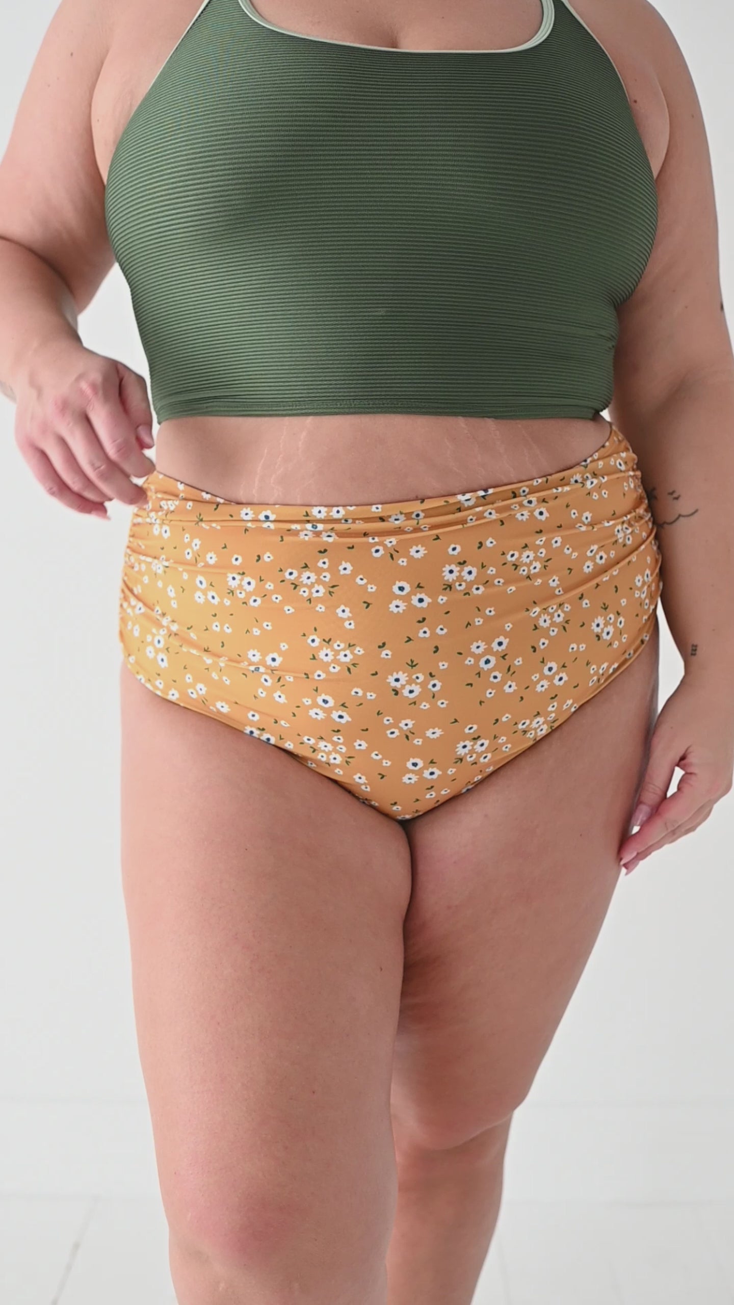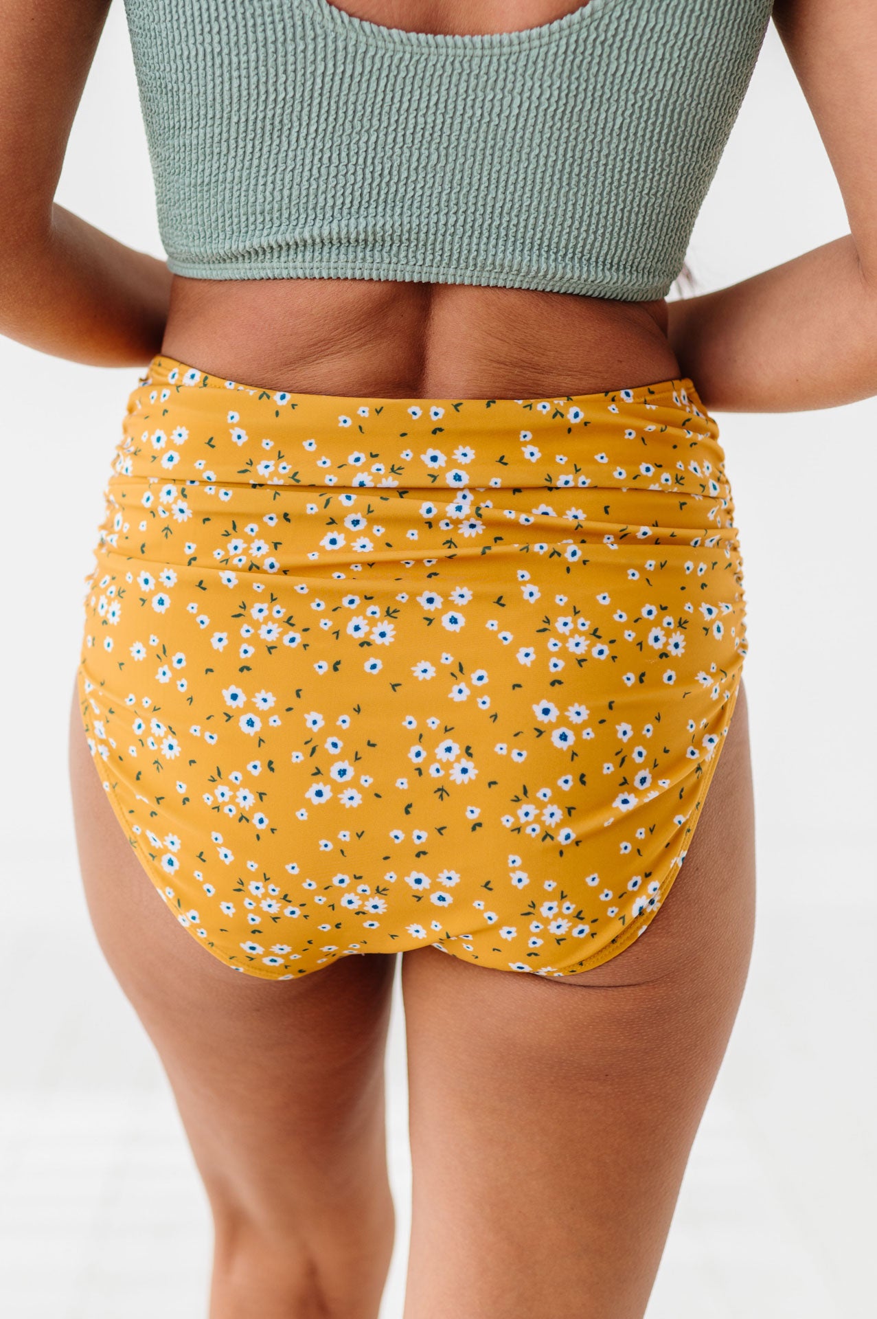 Basic Beach Mid Rise Ruched Bottoms in Sunshine Floral