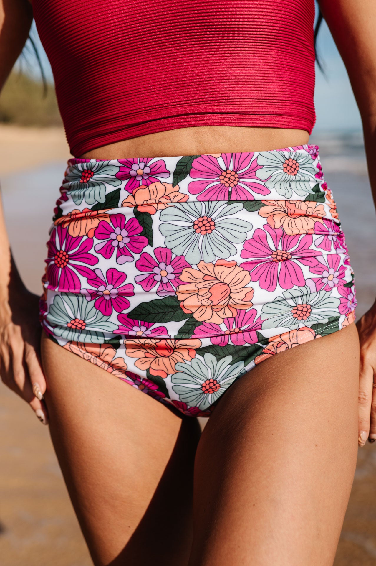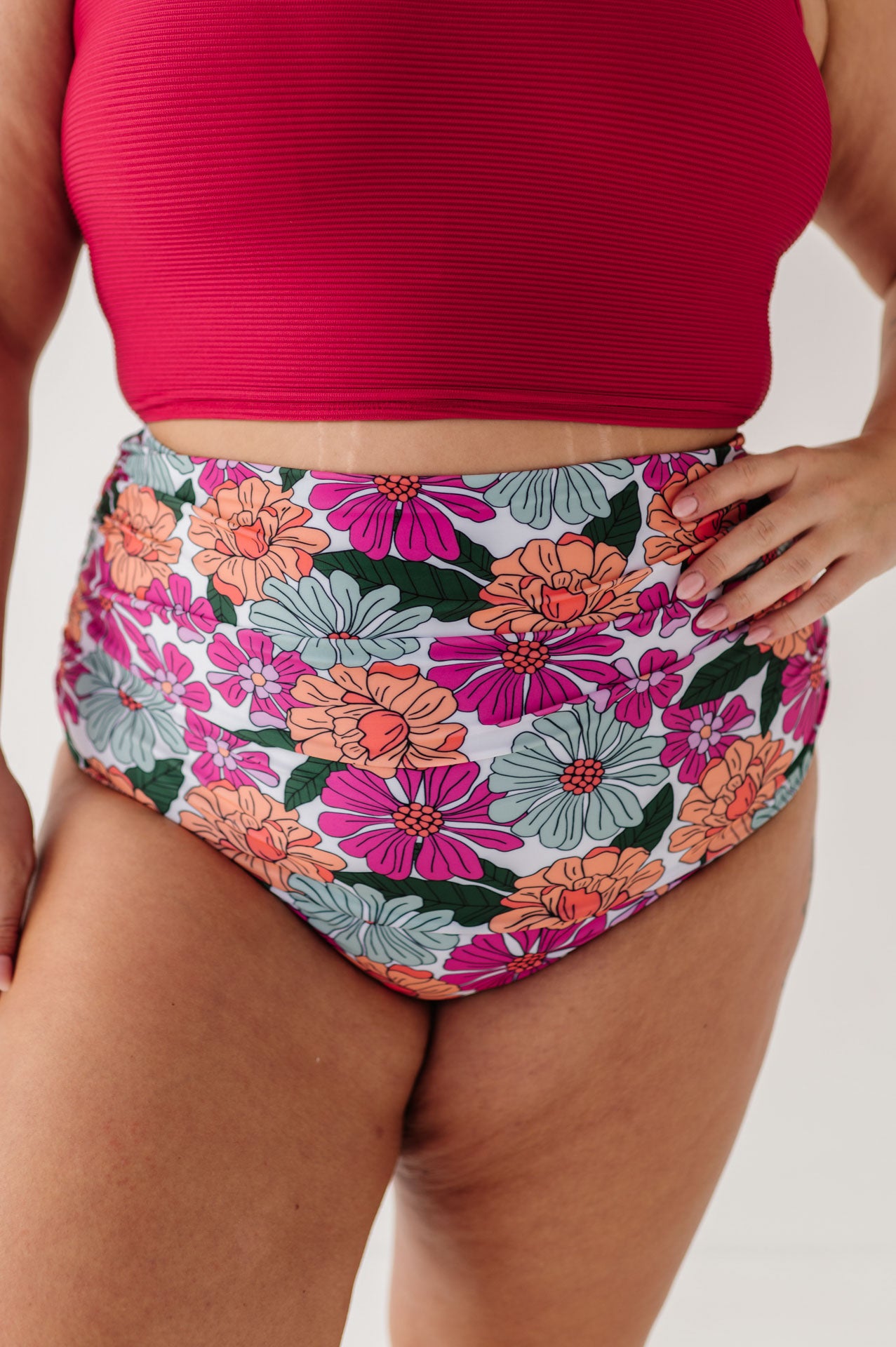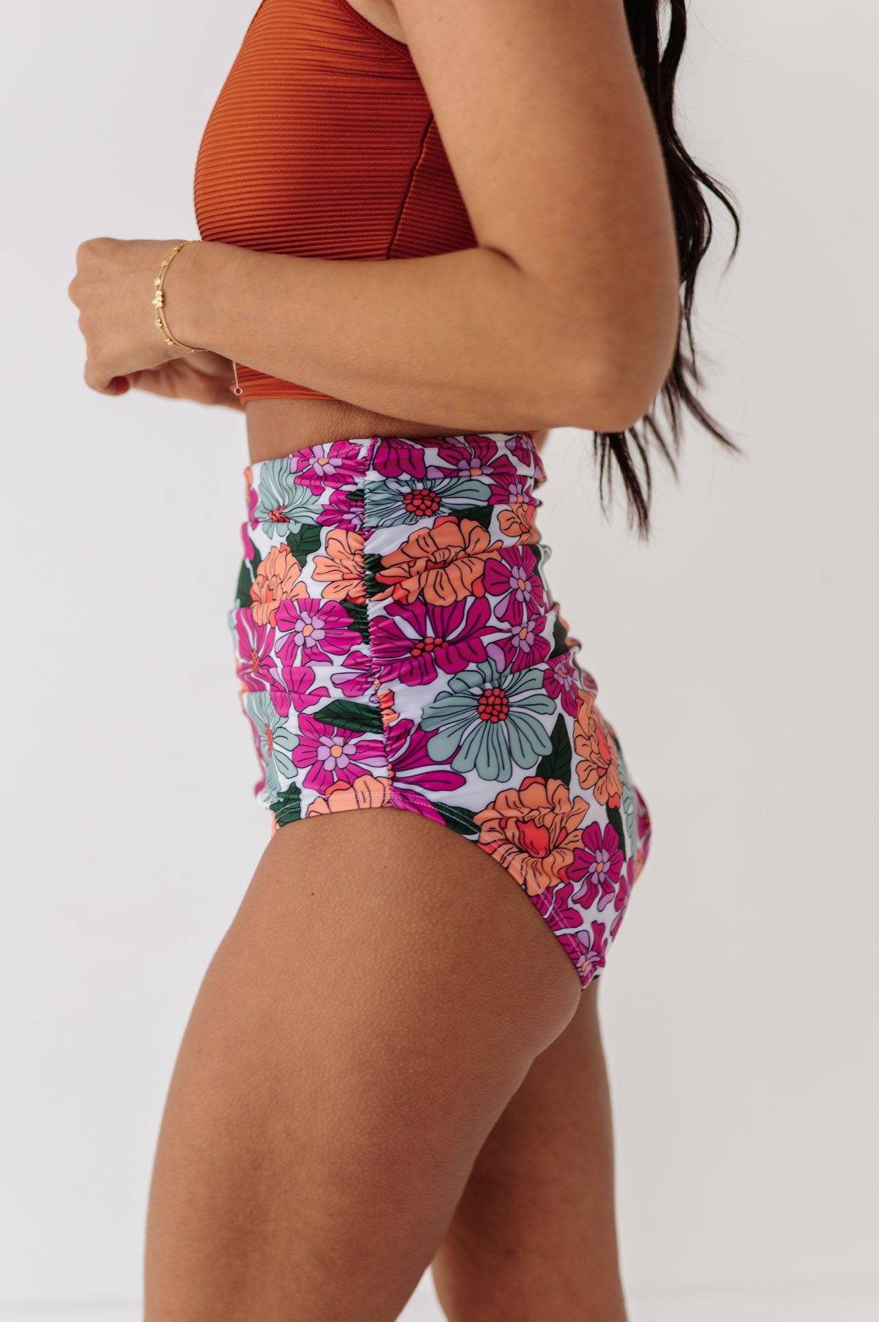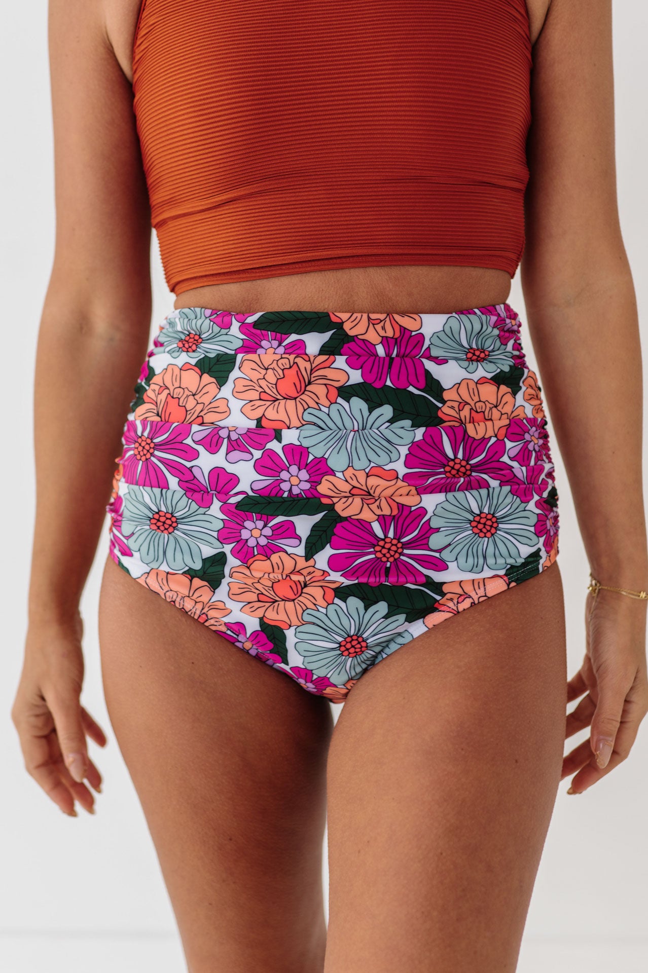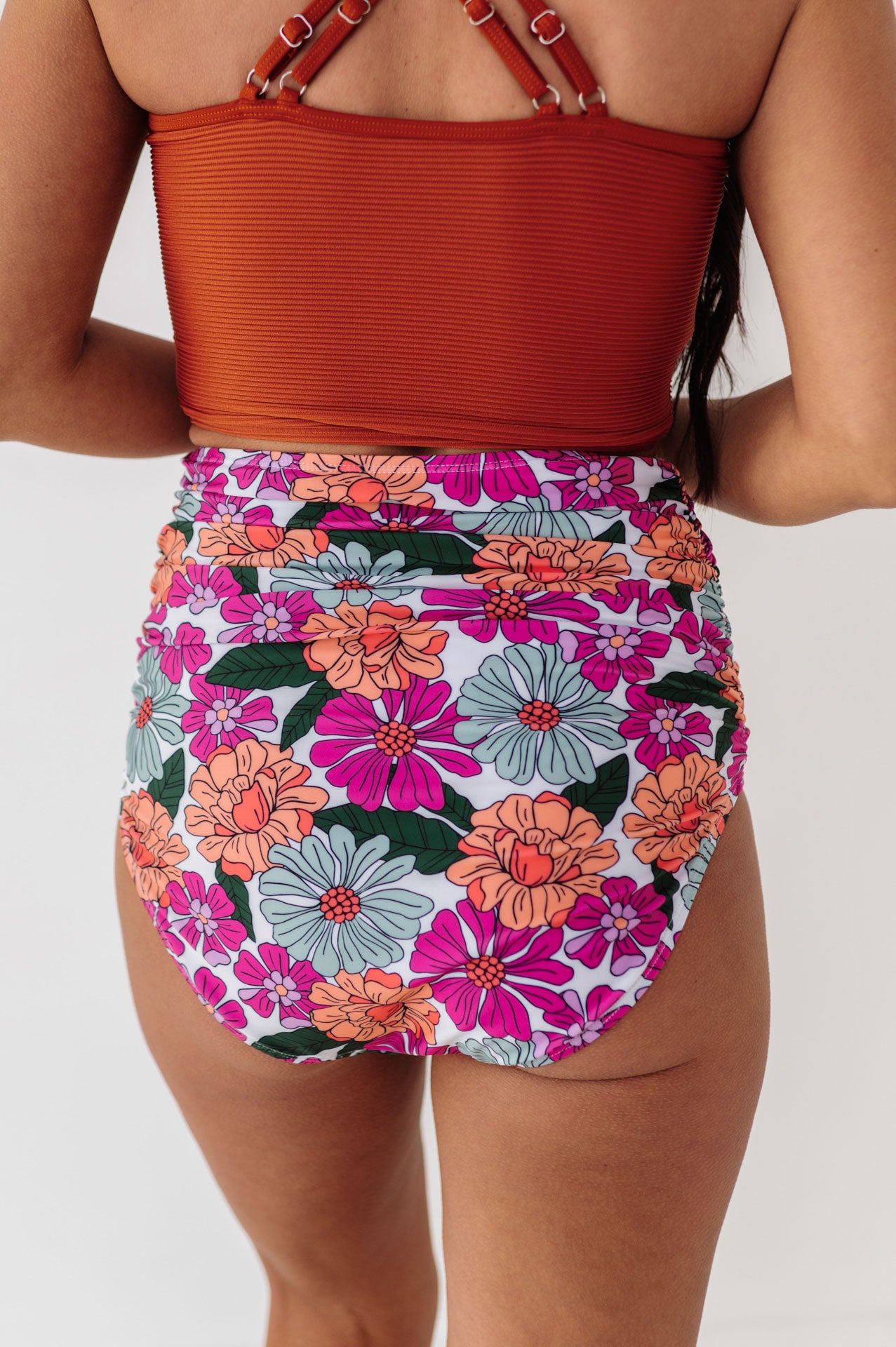 High Waisted Ruched Bottoms In Aurora Floral