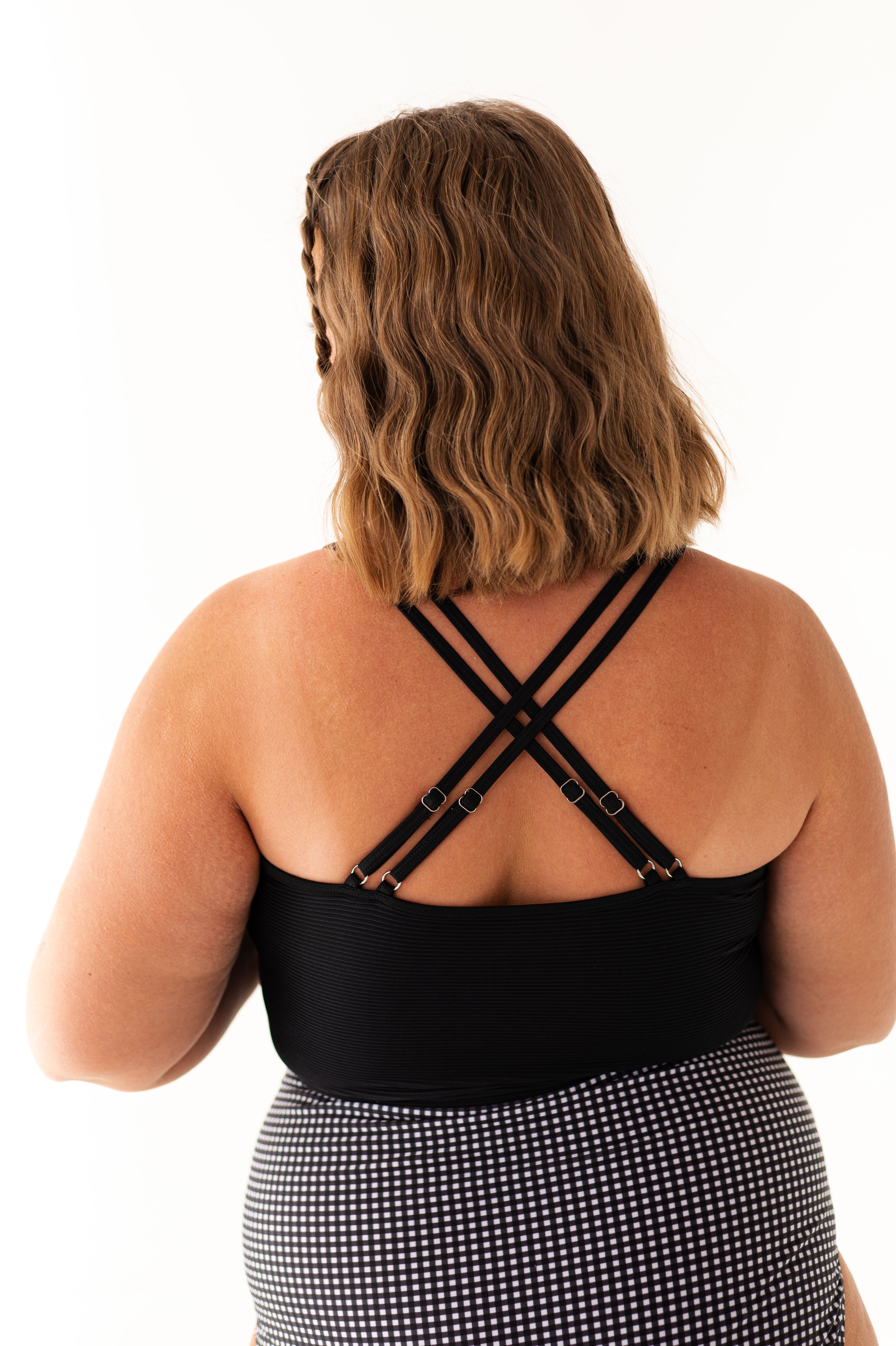 - Adjustable double straps with criss cross back