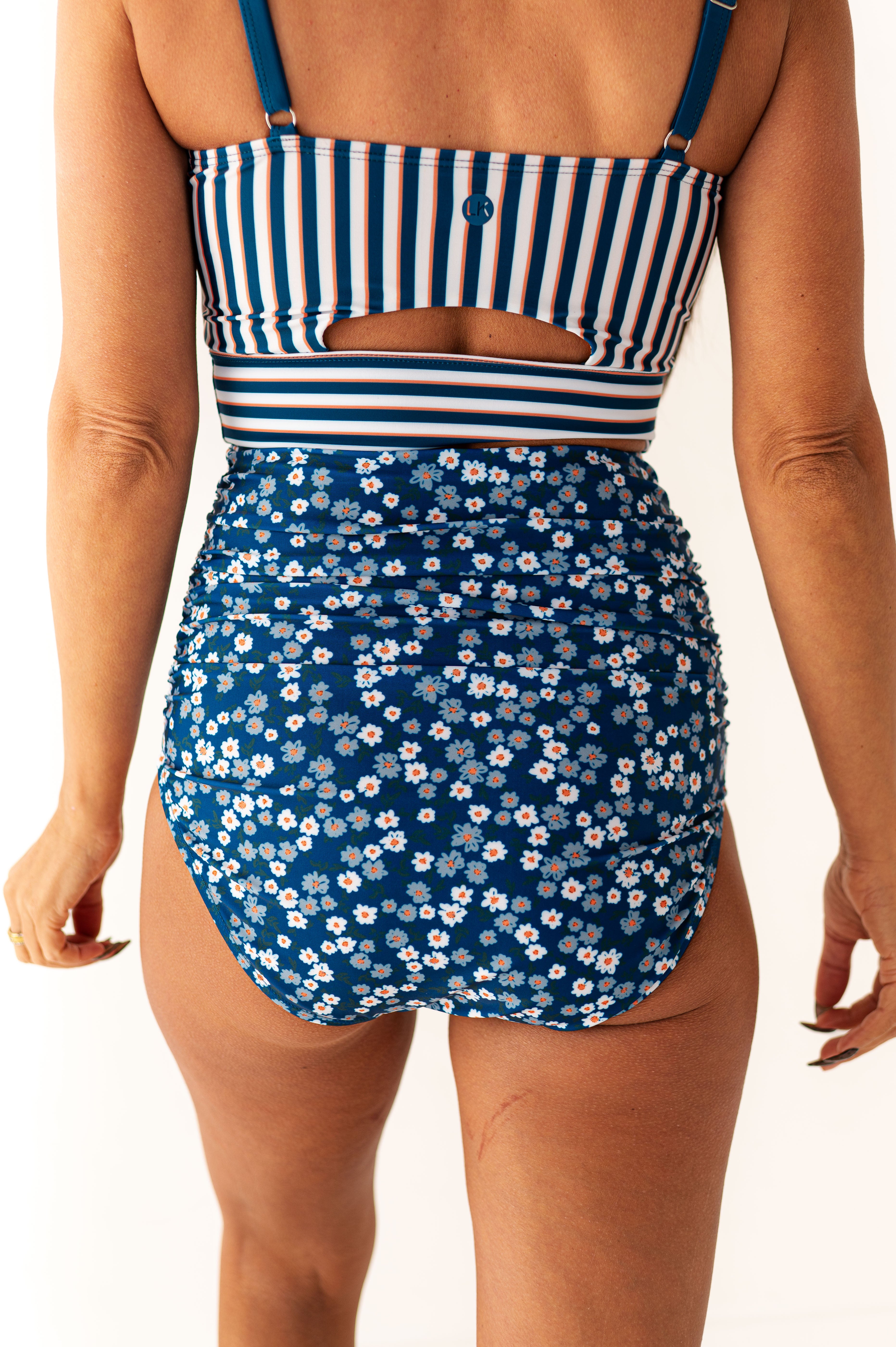 High Waisted Ruched Bottoms in Floral Tides