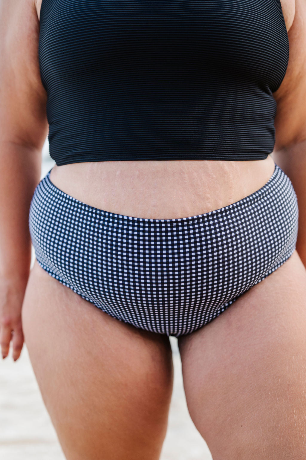 Mid Rise Bottom in Black Gingham