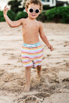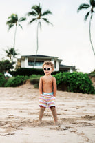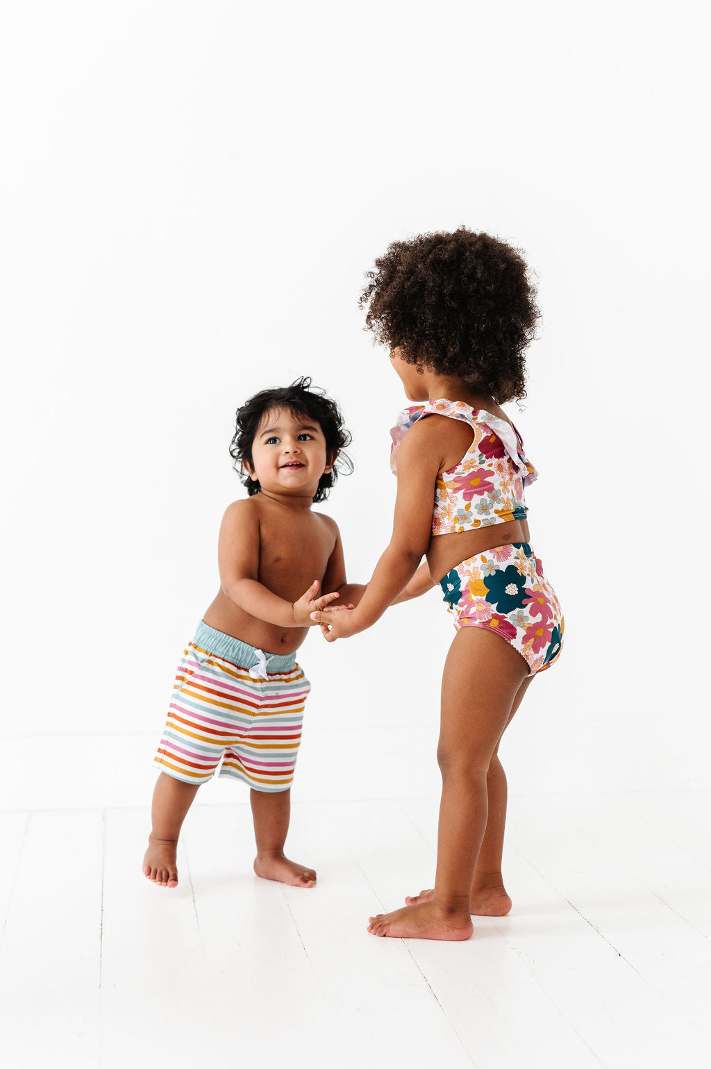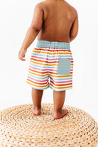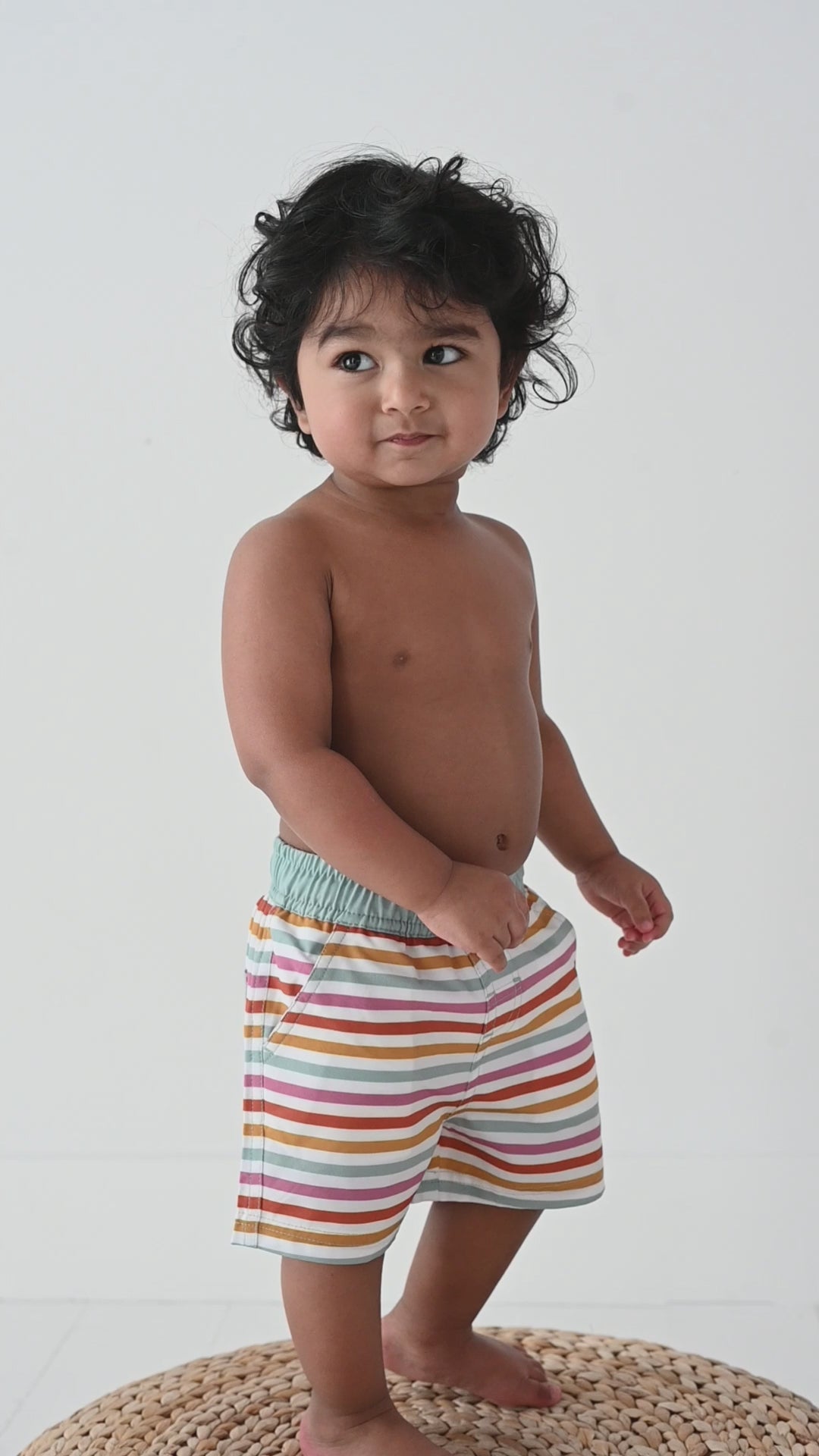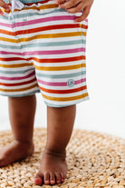 - White bottom with dark mauve, rust, mustard, and sage stripes