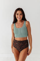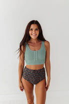 • Halle is 5'5", with a bra size of 34C, 31" under bust 34" largest part and is wearing a Small