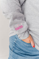 - Light pink, boxing gloves embroidery w/ribbon and I am a Fighter on Sleeve