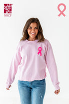 - Hot pink, Breast Cancer Ribbon graphic on front upper left chest