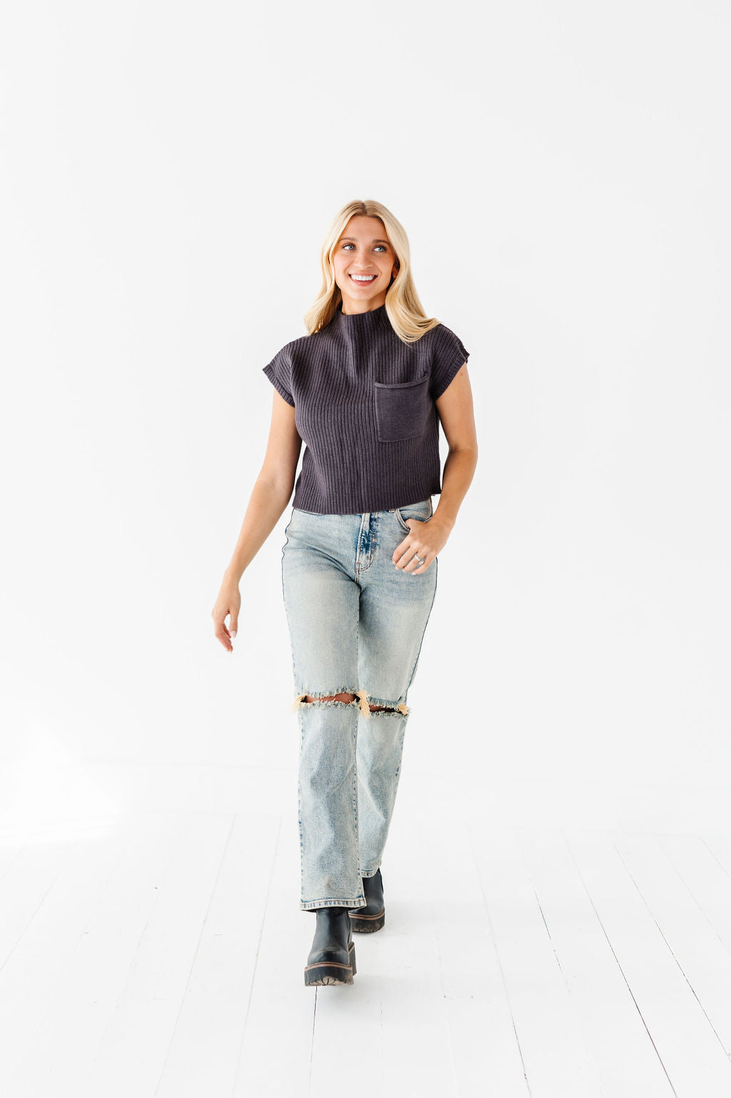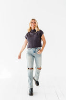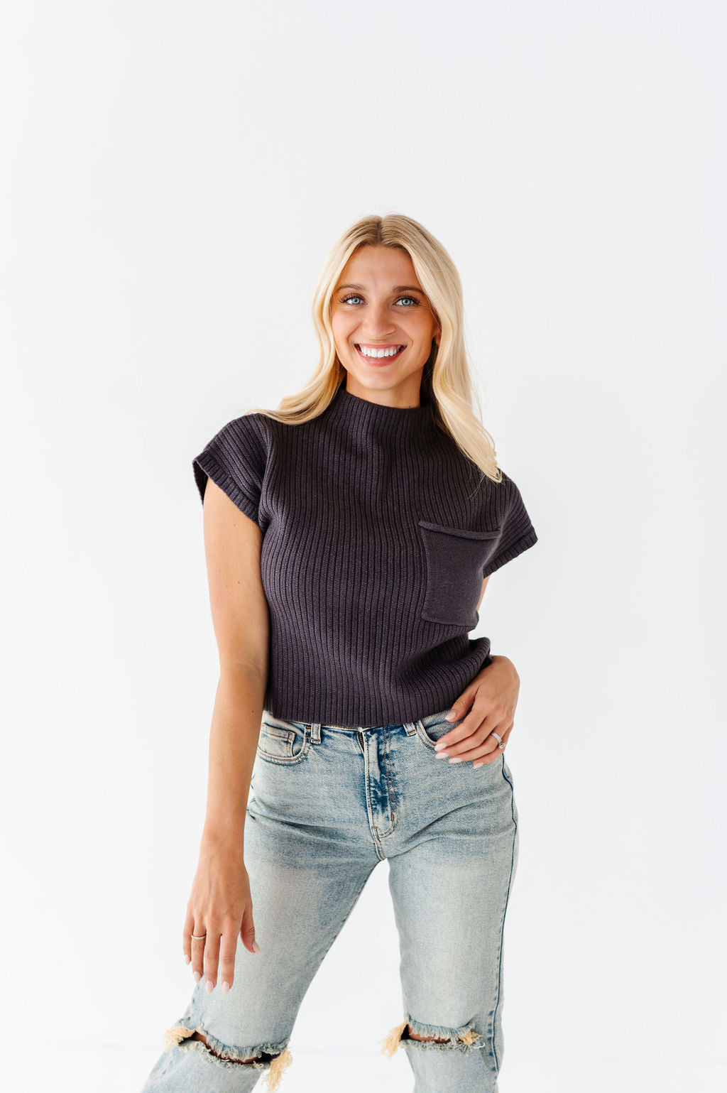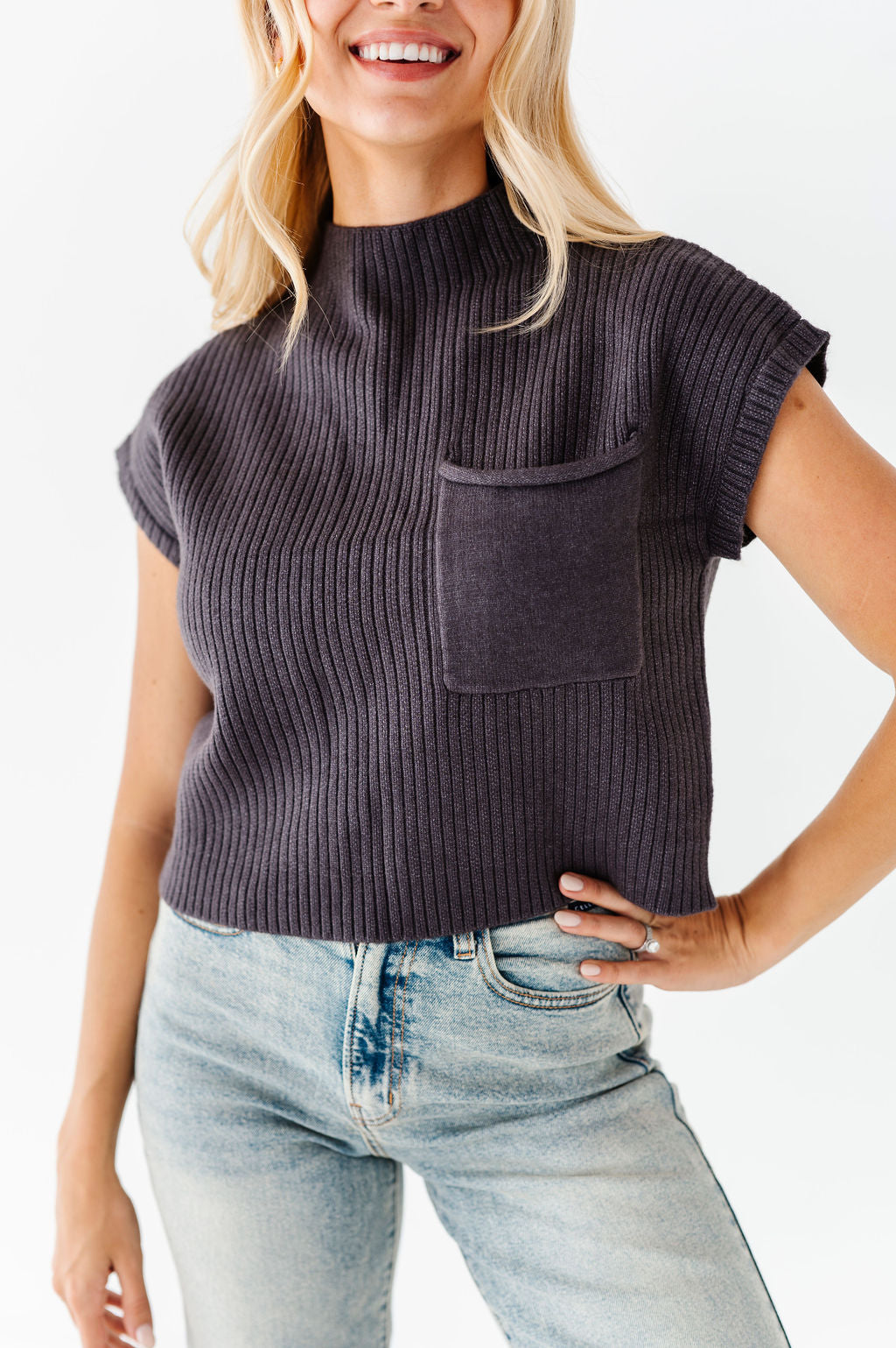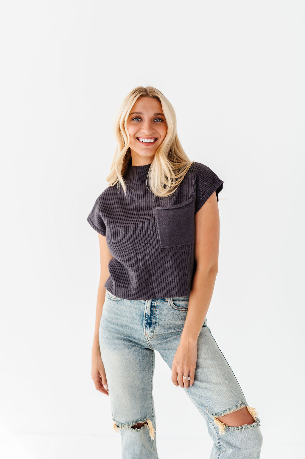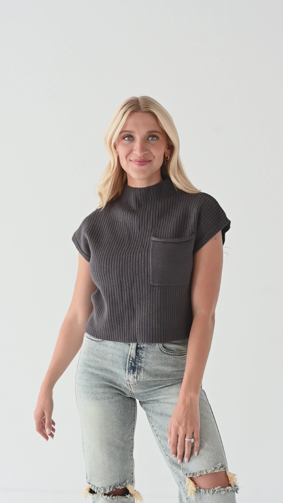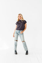 Rainee Sweater Top in Charcoal