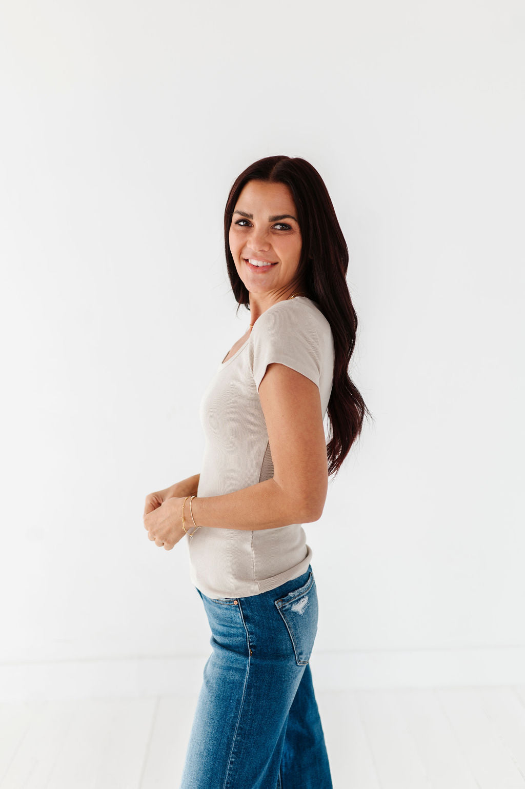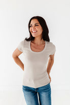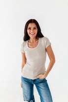 Stevie Ribbed Top in Beige