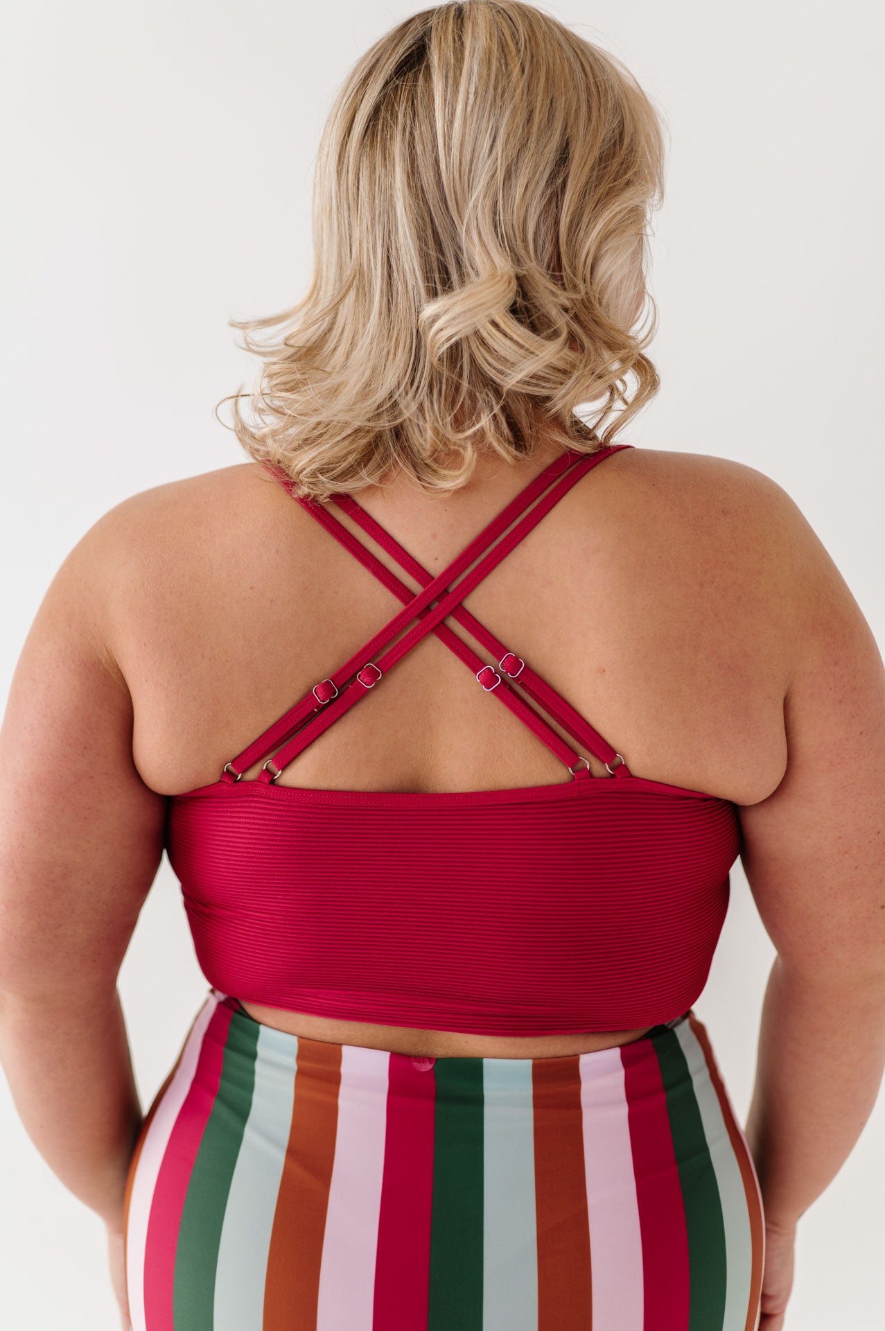 - Adjustable double straps with criss cross back
