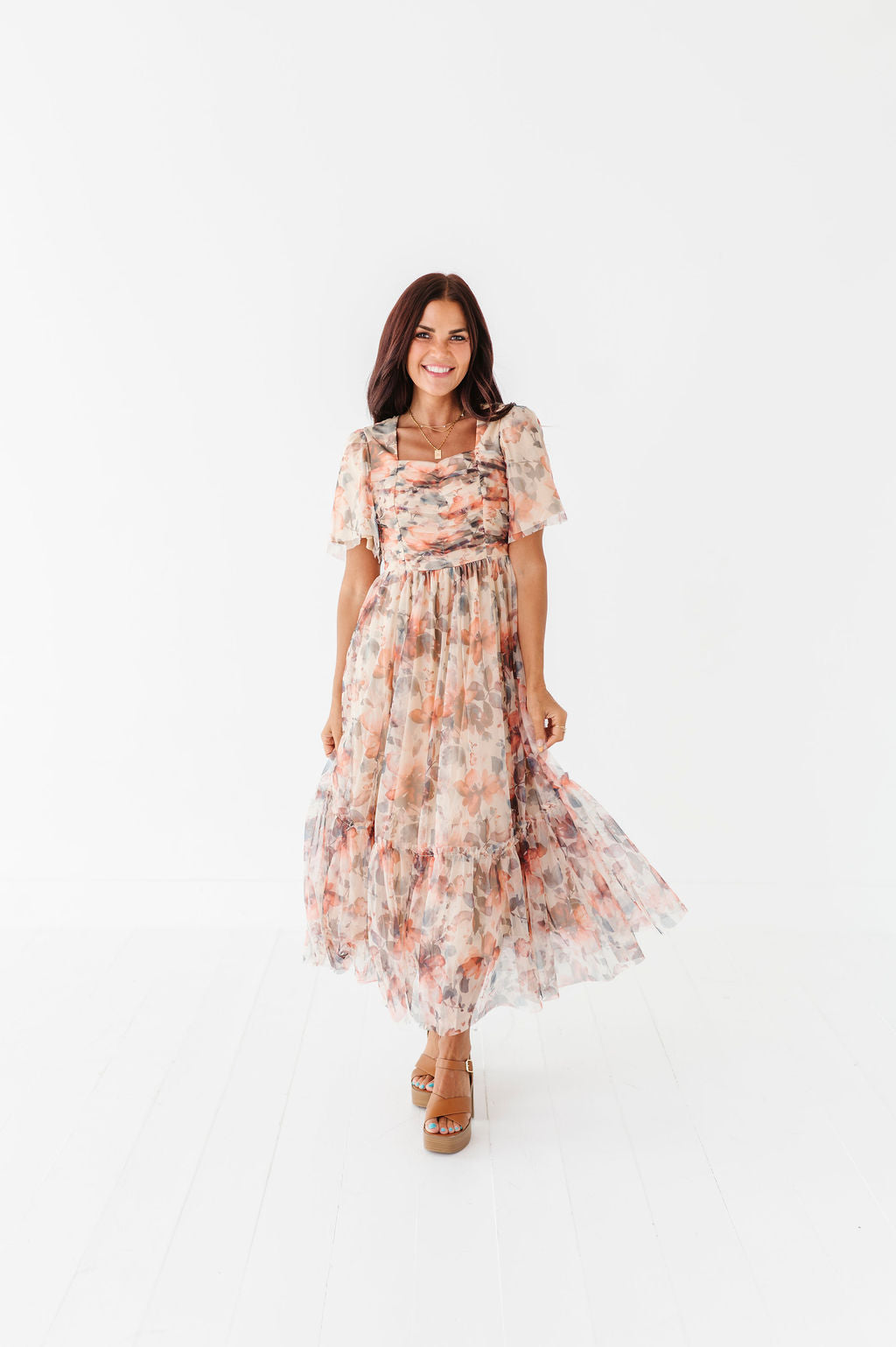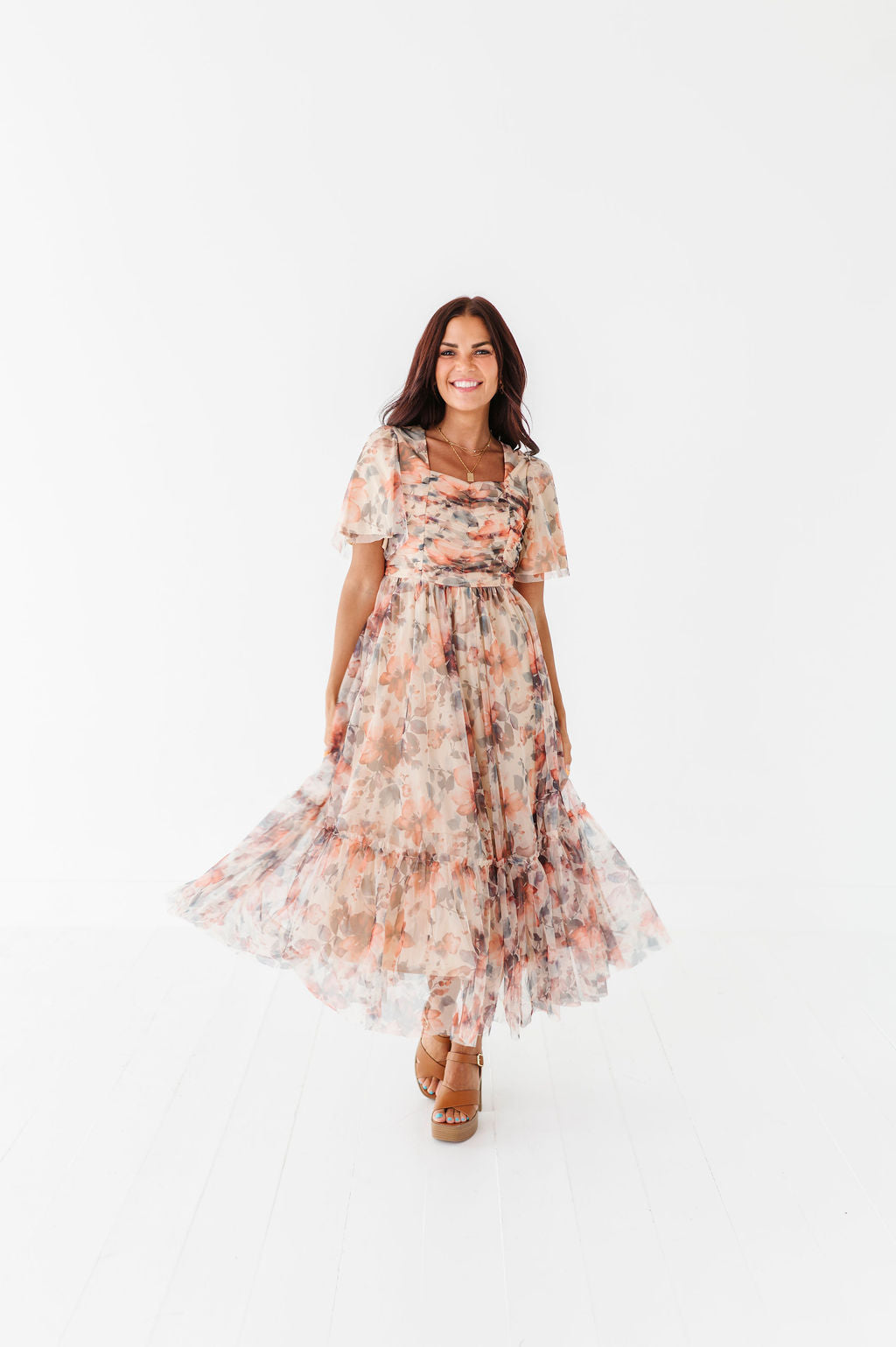 - Tiered skirt with ruffle detail