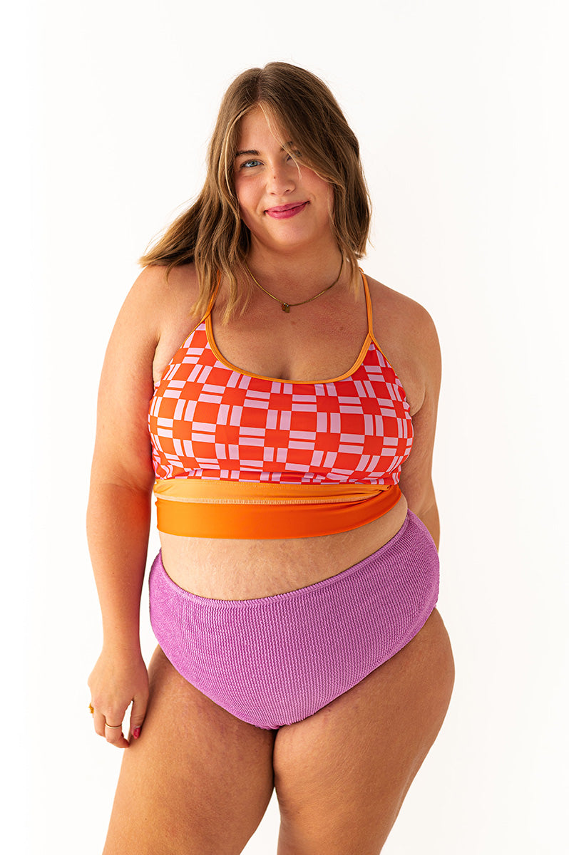Colorblock Crop in Throwback Check