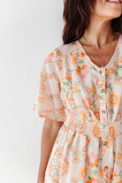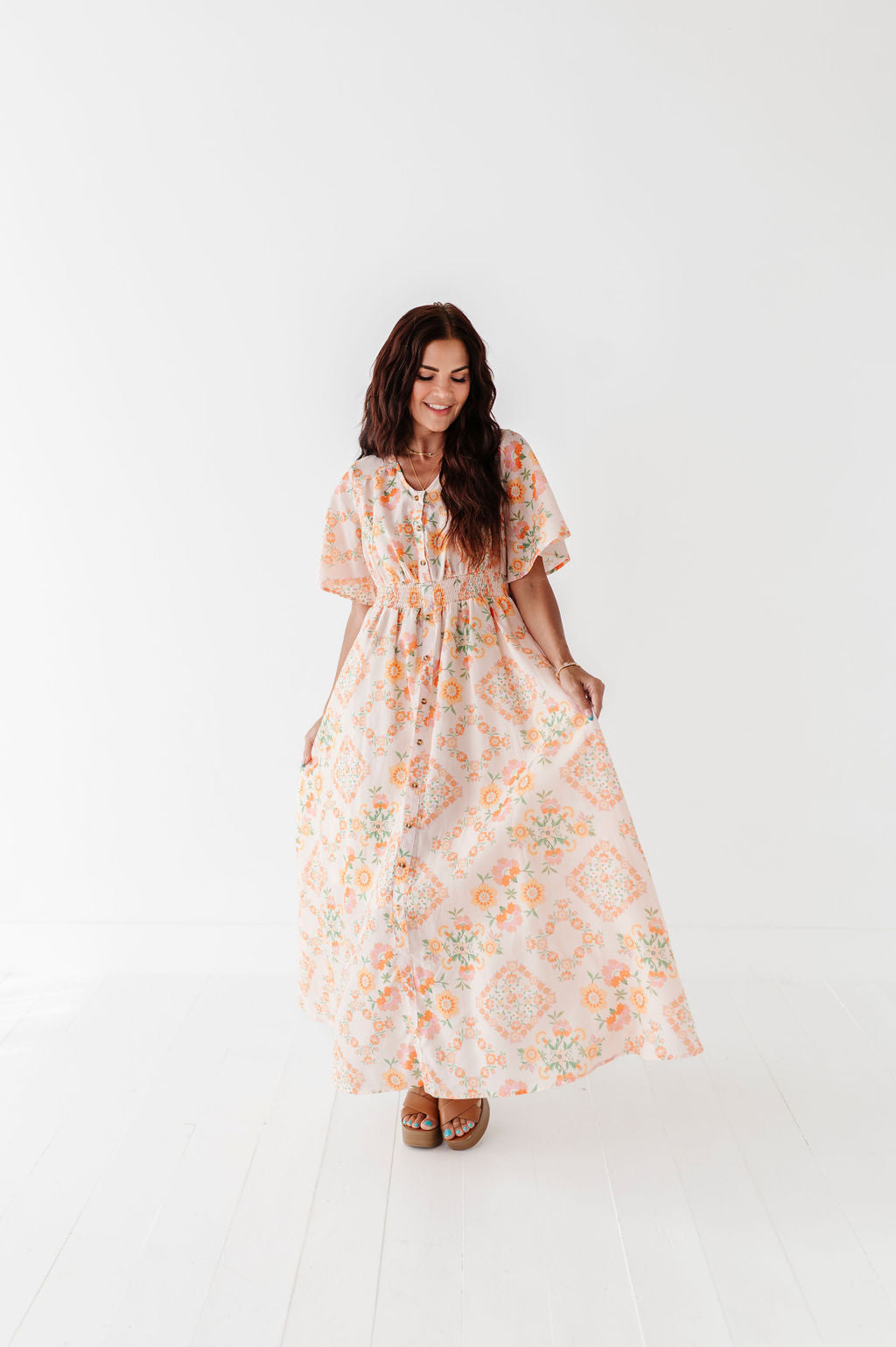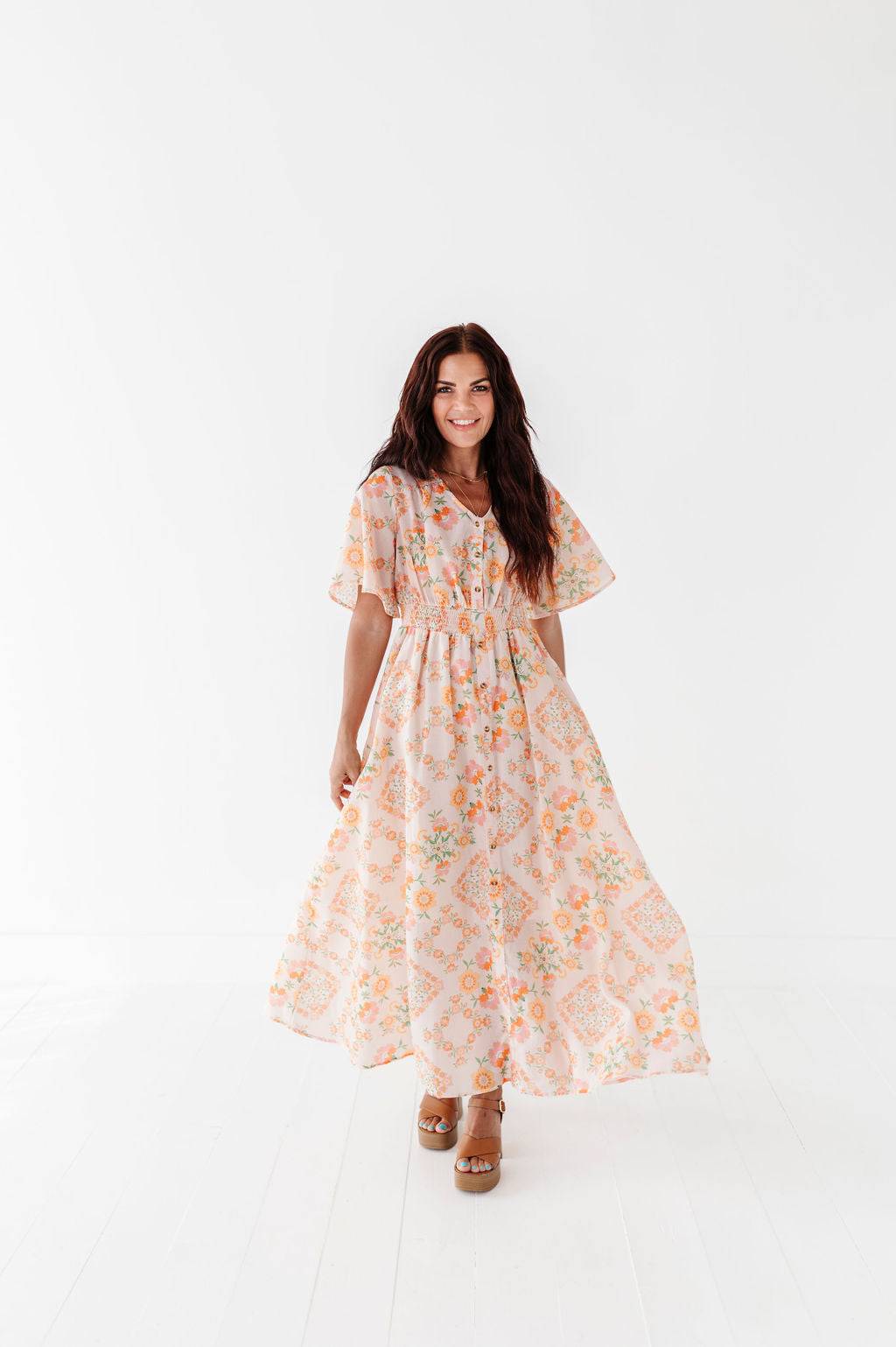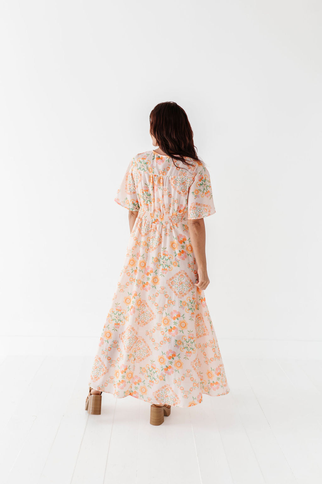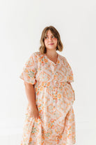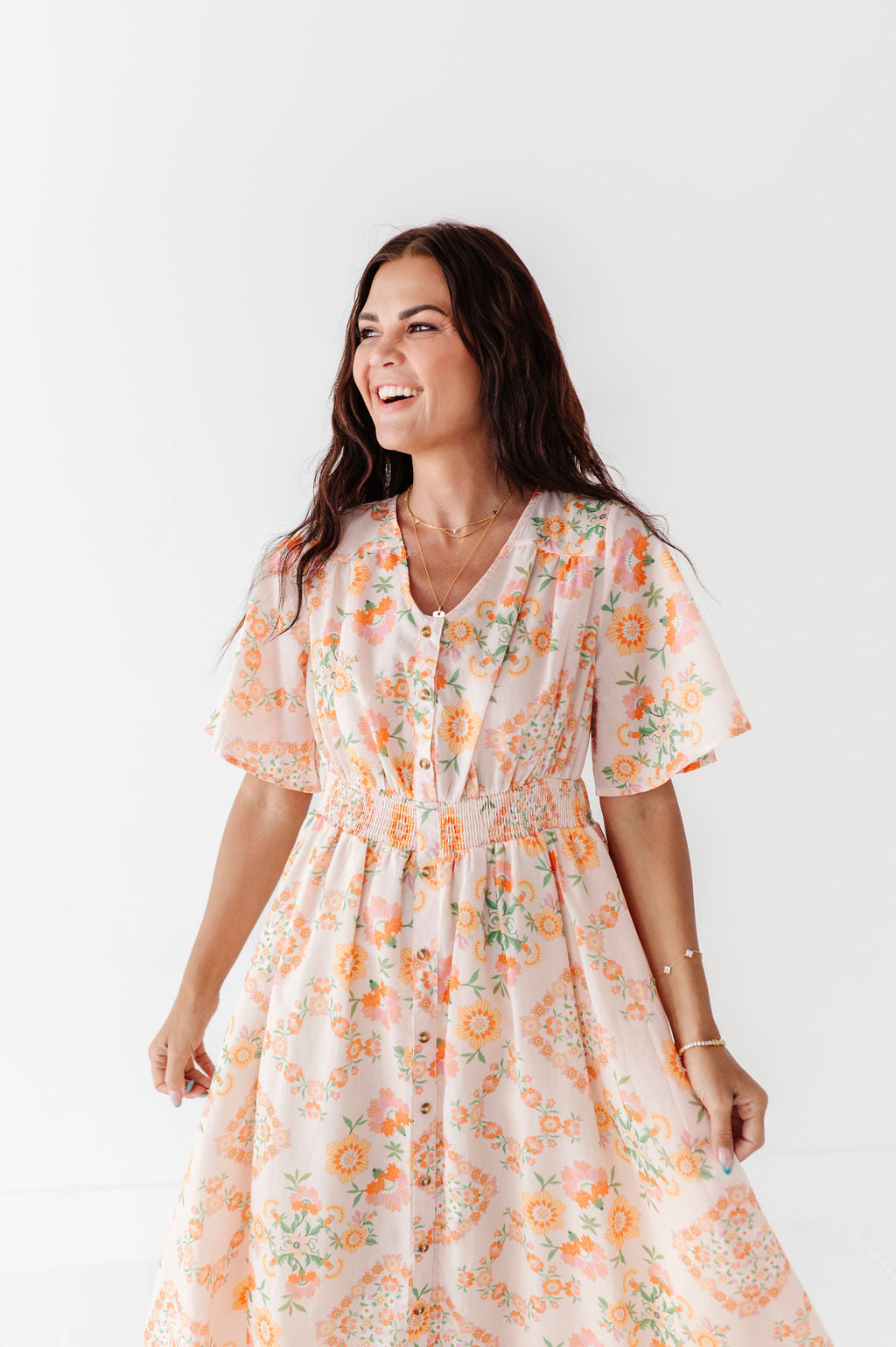 - Lavender, burnt orange, yellow, mauve, white and sage floral print