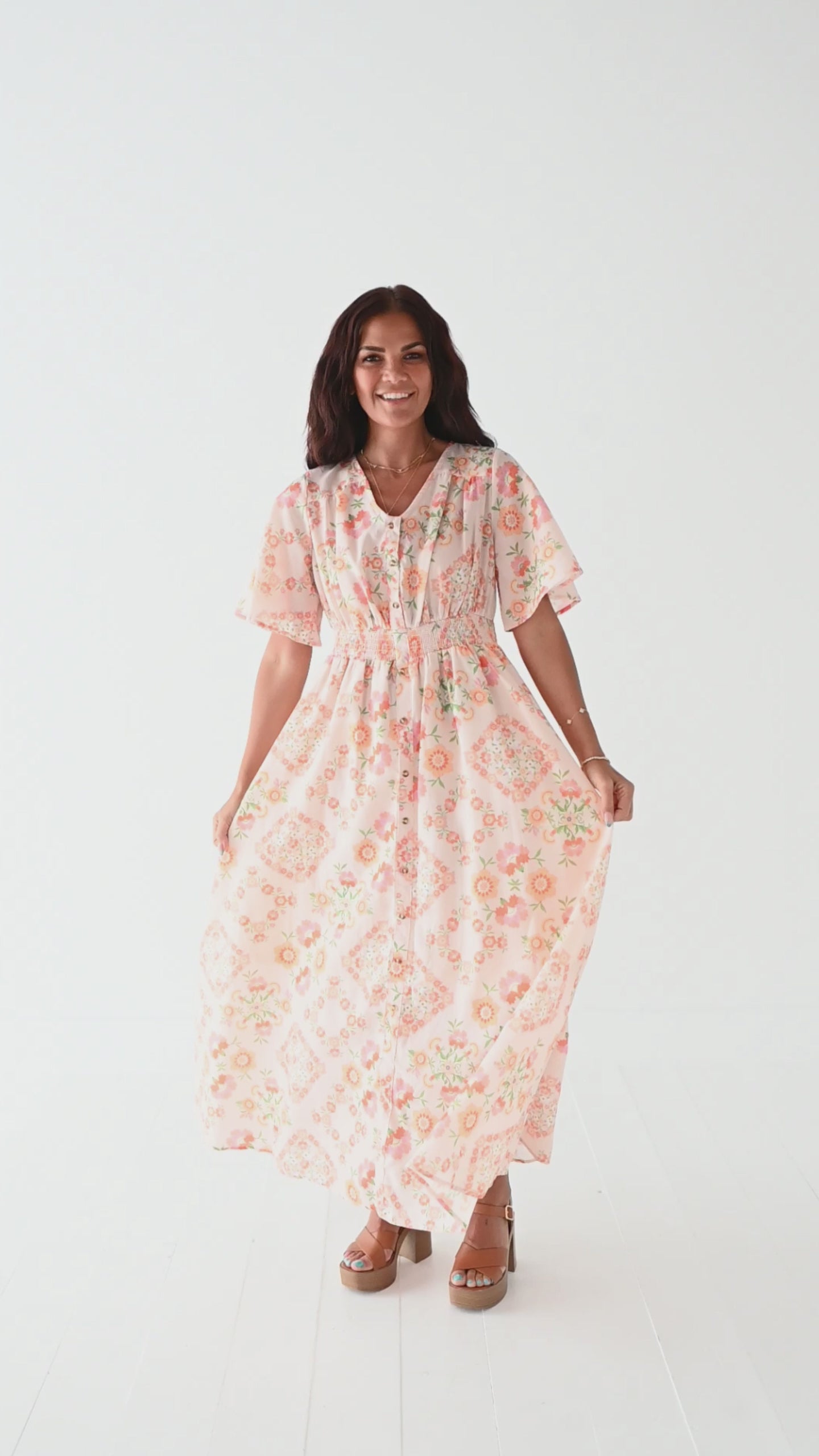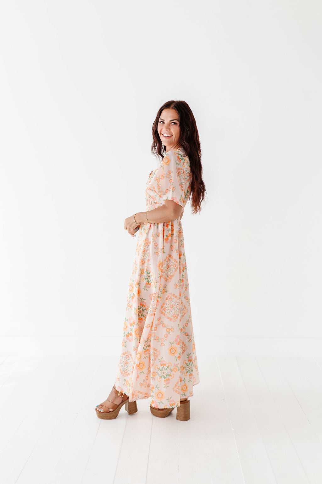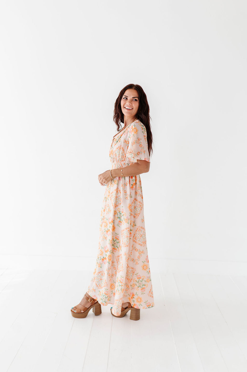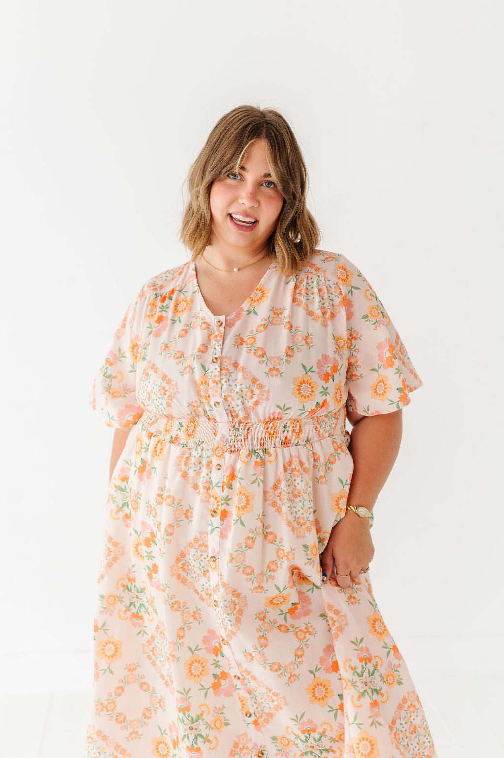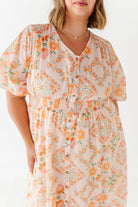 - Lavender, burnt orange, yellow, mauve, white and sage floral print